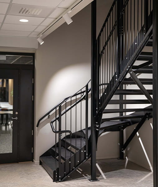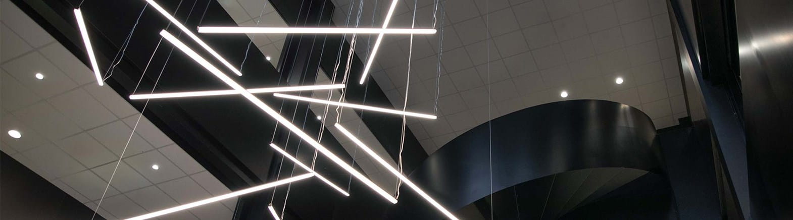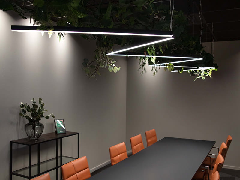 Design og arkitektur hos The Park gennemsyres af bæredygtighedstanker og energieffektivitet, hvor innovative løsninger og materialevalg fører an. Hide-a-lites alsidige belysningsløsninger spiller en central rolle i at forstærke denne vision, ikke kun ved at belyse, men også fremhæve og accentuere bygningens forskellige egenskaber og rum. Blandt de mest slående elementer ved hovedindgangen er et spektakulært lysfænomen skabt af LED-strips i profiler, der er hængt ned fra det høje loft for at skabe en visuel attraktion. Denne innovative løsning kombineres med andre dynamiske belysningskoncepter. Et eksempel er armaturet Ray, der skaber distinkte lyslinjer i virksomhedens spisesalsloft. Derudover bruges hvide tracklights på skinner, som ikke kun oplyser trapper og passager, men også gør belysningen fleksibel, så den kan ændres efter behov, afhængigt af hvad der skal fremhæves i et bestemt rum eller område.