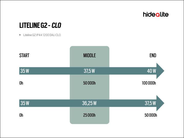 Meget effektiv udskiftning af lysstofrør med forskellige kontrolmuligheder. Ramme af hvidlakeret stålplade med vipbare, patenterede gavle og prismatisk afskærming af slagfast polykarbonat med opalfilm for jævn lysfordeling. Både gavle og afskærmning i genbrugsplast. Udskiftelig LED og driver og mulighed for at vælge farvetemperatur og lysmængde via DIP-switch. Trykklemme i begge ender for nem tilslutning. Gennemfortrådet 5x2,5 mm2 som standard. Liteline G2 er perfekt egnet, hvor behovet for lys er højt og kravene til ydeevne høje, såsom produktionsmiljøer, garager eller industrilokaler.