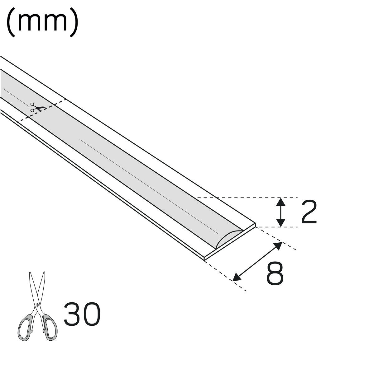 LEDstrip med teknik som gemmer LED-chip og elektronik under et homogent fosfor/silikone-lag. Med kort afstand mellem dioderne skabes en jævnt lysende linje uden profil eller dæksellåg. COB-teknik med høj lysmængde og virkelig god effektivitet. Afklipningsinterval på 31,25 mm og sømløs skarring gør det nemt at skabe tilpassede længder. Leveres som standard i ruller á fem meter med 2 m tilslutningskabel i hver ende, 1 stk. lynkobling og selvklæbende tape for nem montering. På forespørgsel leveres løbende meter med tilslutningskabel efter ønske, løbende meter leveres som standard uden tilslutningskabel. Driver bestilles separat alt efter ønsket dæmpningsteknik og placering. Maksimal længde 5m.