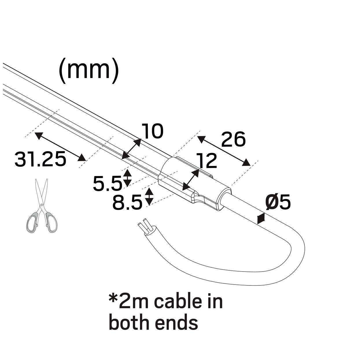 • Leveres klar til montering – 5 m rulle med 2 m tilslutningskabel i begge ender