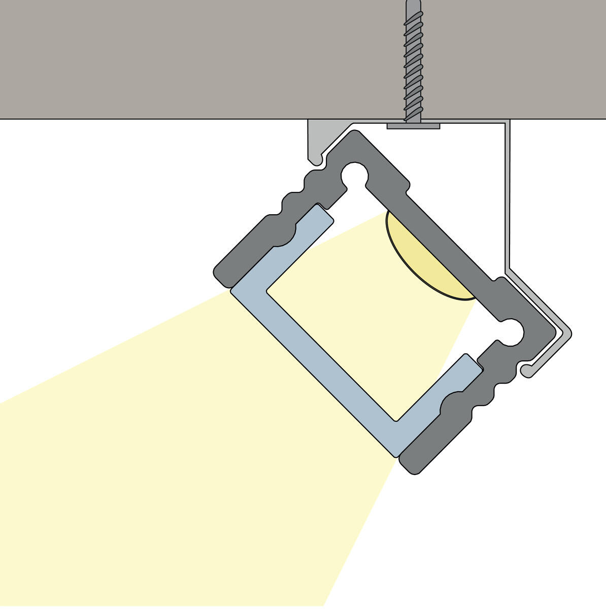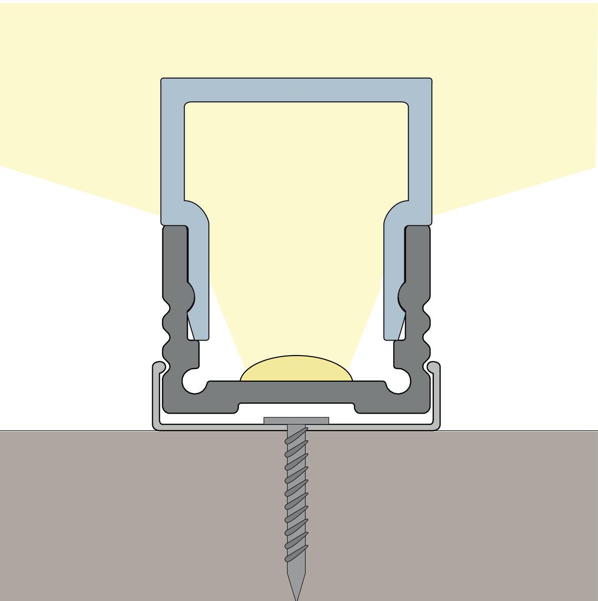 Lavtbygget profil med et bredt anvendelsesområde, alene for at beskytte LED-strippen og øge kølingen, eller som et komplet armatur. Takket være det nydelige design er det nemt at anvende selv på steder, hvor pladsen er begrænset. Som fx bænkbelysning, som punkt- og arbejdslys i receptionsskranker og i vitrineskabe Med profilens tre spor justeres ujævnheder i underlaget ved montering med klips. Se oversigtsbladet under fanebladet dokumenter for passende LED-strip.