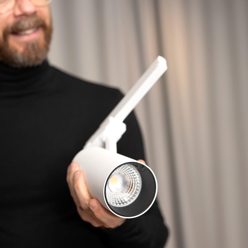 For dem, der ønsker personlig kontrol, tilbyder Vision Track i sin standardmodel muligheden for at dæmpe og forstærke farver direkte ved at tage et billede af objektet og vælge farven på billedet via vores app Hidealite Vision. Dette er ideelt til at fremhæve udvalgte genstande i forskellige miljøer – fra informationsskilt i butikker eller malerier i et galleri til indbydende produktudstillinger samt til at skabe den rette atmosfære i restauranter og butikker.