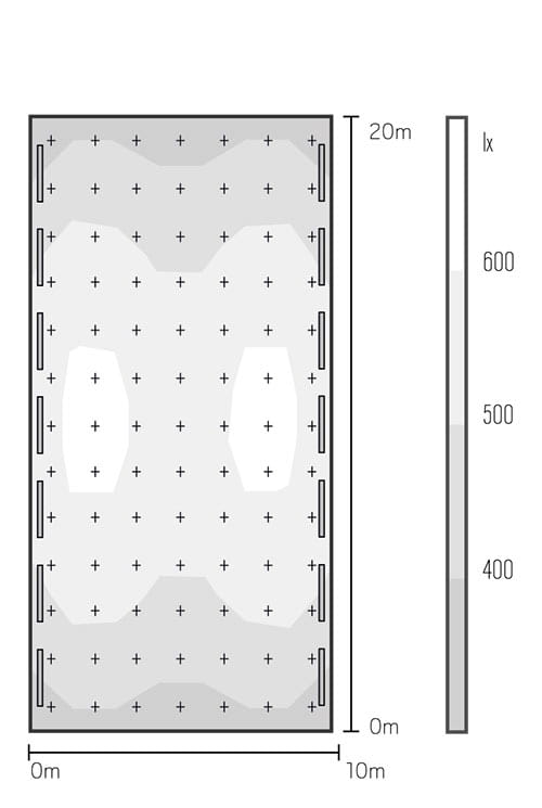 | Horizontal illuminance (at floor level) | 513 | 0.72 |