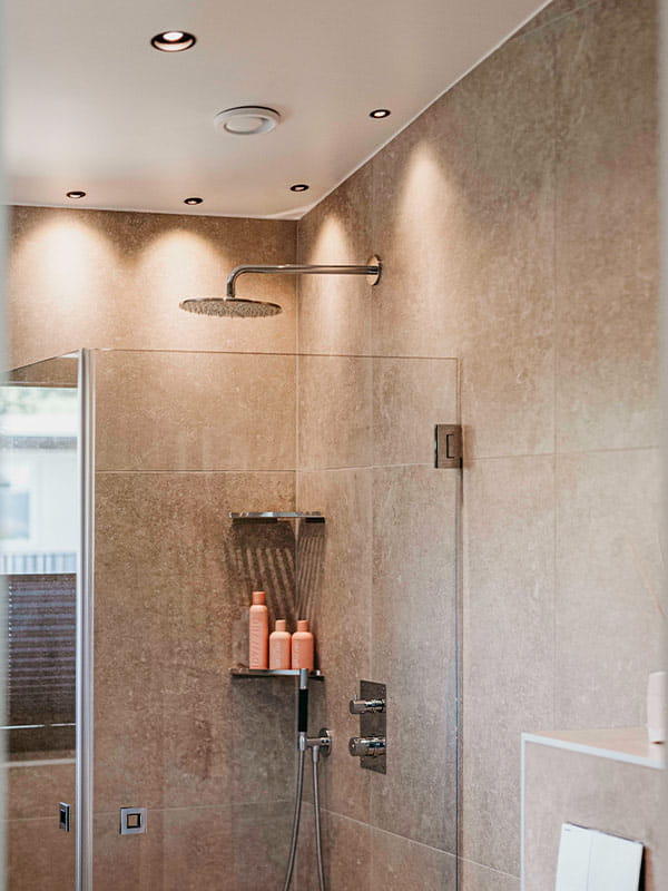 As we step into the kitchen, we are greeted by a sleek kitchen island, where the suspended Globe G2 Pendant luminaires hover above the surface, adding both functionality and elegance. With their curved reflectors, these fixtures create a pleasant and focused light, perfect for both cooking and social moments. The modern design harmonizes with the kitchen’s other details, providing a visual boost to the heart of the home.