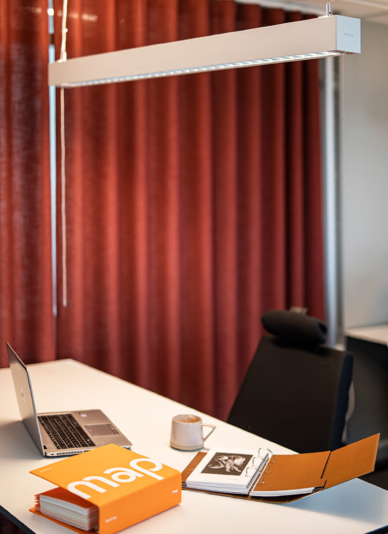 Actor Pendant is an ideal interior luminaire for classrooms, meeting rooms and open office landscapes. The luminaire is designed by our product developers to limit light reflections in monitors. Be sure to avoid spotlighting on walls in offices with glossy computer monitors, as it can create unwanted reflections. Therefore, it is an advantage to use Actor 30/70 which alone can meet the requirements for smaller offices.