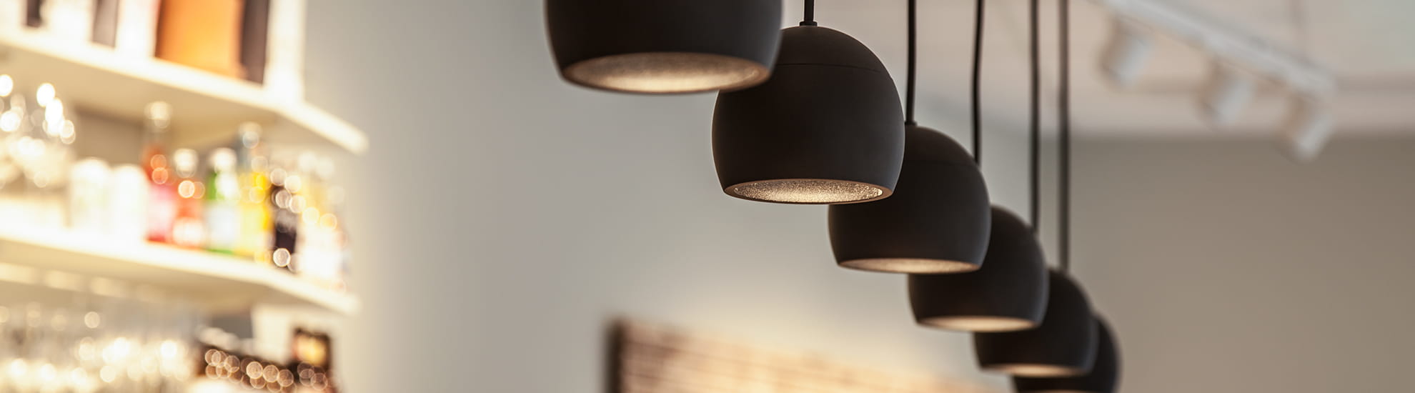 The long counter, just inside the entrance is illuminated with our pendant Globe G2 in black - both a decorative and functional element. The Globe G2 is also mounted in a row over the bar counter next to the windows, facing the street, creating a pleasant general lighting for the lunch-eating guest.