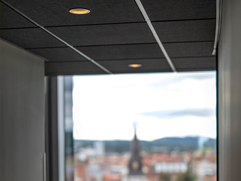 With its seventeen floors, Quality Hotel Match stretches majestically into the sky and offers a wonderful view over Lake Vättern, Sweden’s second largest lake, which lies just a few metres from the hotel. The long corridors on all floors have black ceilings fitted with black bowl-shaped downlights, Globe G2 Recessed. The lighting is subdued, so that visitors can find their way but do not miss out on the striking view at the end of every corridor.