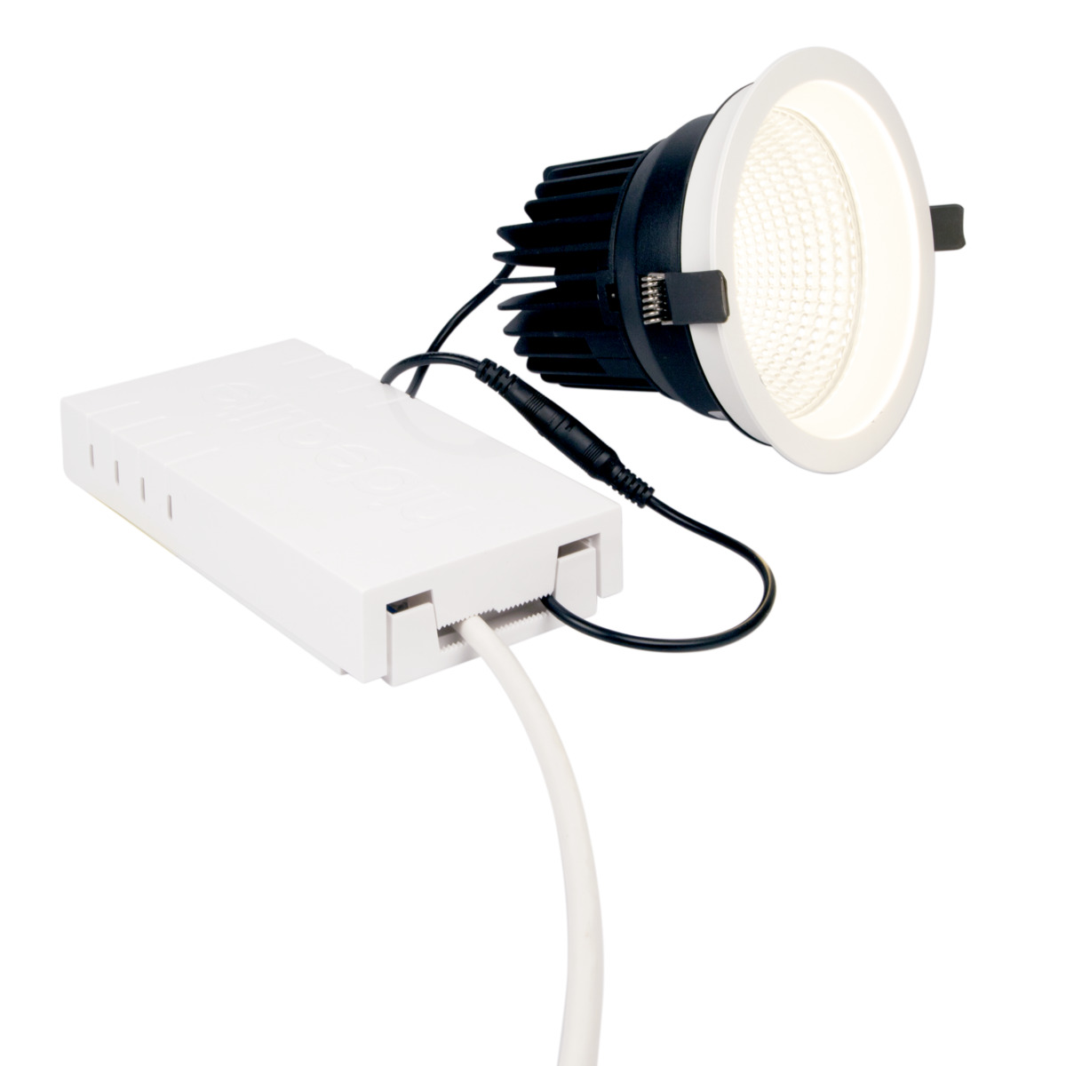 Functional inset box of halogen-free plastic (V0) that gathers and conceals you drives in one and the same place. For installation between battens. Install your drivers on the enclosed DIN track or fasten them freely on the mounting plate. Knockouts, 4x16 mm and 1x20 mm, are present on all sides for easy installation. The insert box can easily be concealed by painting or wall-papering directly over the cover. Comes complete with 2x DIN tracks, 1x mounting plate and 1x cover and spacer.