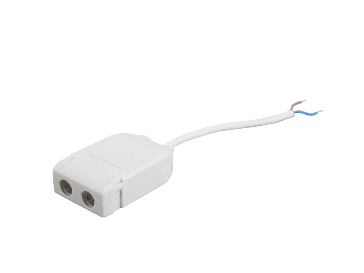 Stand-alone driver casing in white halogen-free plastic for indoor use. With push-in terminal blocks 8 x 0.5-2.5 mm² for connecting driver. Suitable for through wiring between drivers or luminaires, possible through wiring for both incoming power and lighting control. Can be used to conceal drivers or as a connection point. Q-box is most suited for use with our Jolly drivers and requires no tools. Screwless strain relief and through wiring for a service-friendly installation.