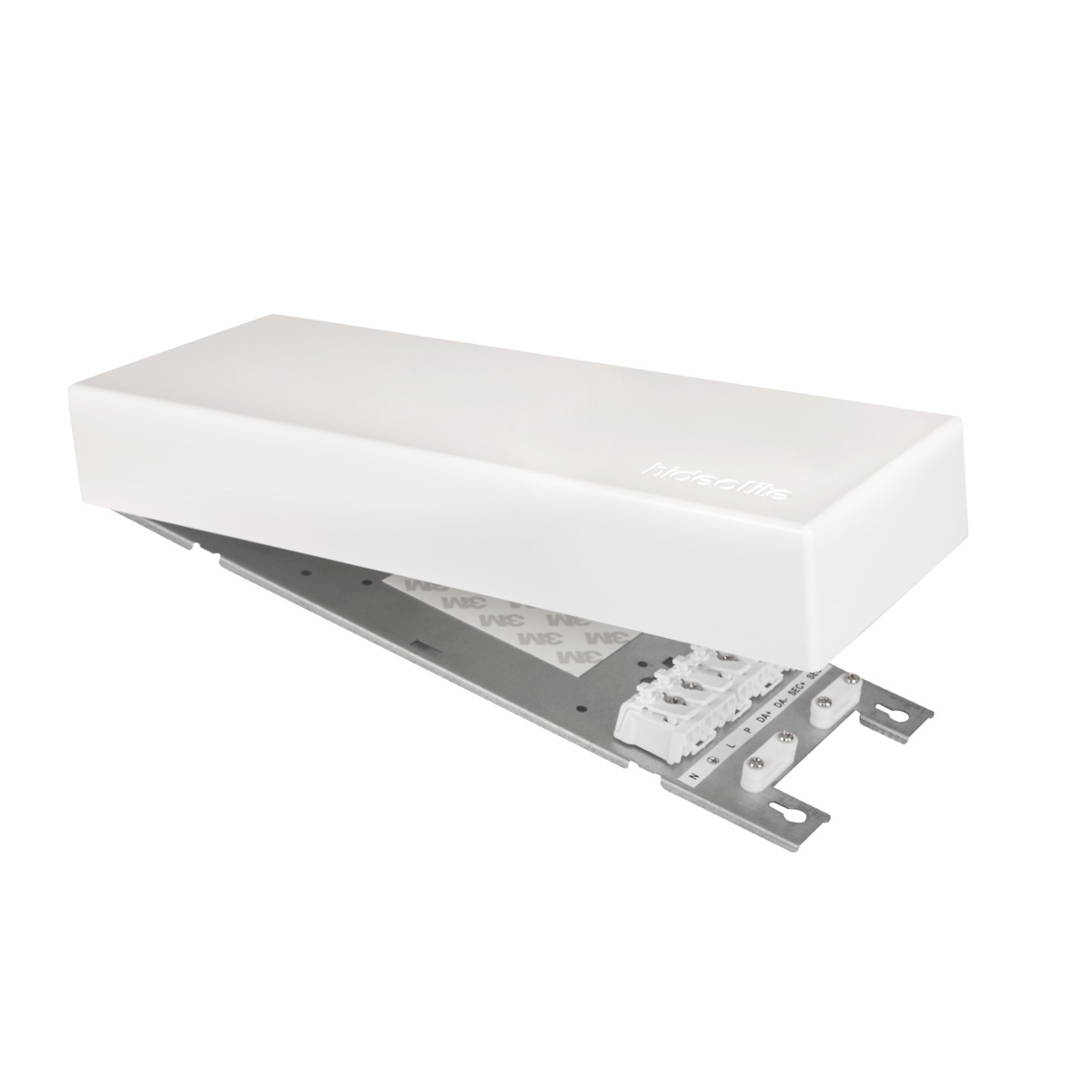 Functional inset box of halogen-free plastic (V0) that gathers and conceals you drives in one and the same place. For installation between battens. Install your drivers on the enclosed DIN track or fasten them freely on the mounting plate. Knockouts, 4x16 mm and 1x20 mm, are present on all sides for easy installation. The insert box can easily be concealed by painting or wall-papering directly over the cover. Comes complete with 2x DIN tracks, 1x mounting plate and 1x cover and spacer.