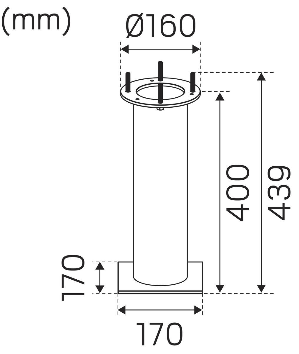 Inserts for mounting bollards. The inserts have horizontal stainless adjustment screws, M16 with 8mm socket head for easy adjustment, fastening and correction of the post. The base foundation is suitable for installation in 108 base, while the ground anchor is intended for burying or casting. The 365 mm foundation insert fits an insertion depth of 355 mm, while the 490 mm foundation insert is compatible with an insertion depth of 480 mm.
