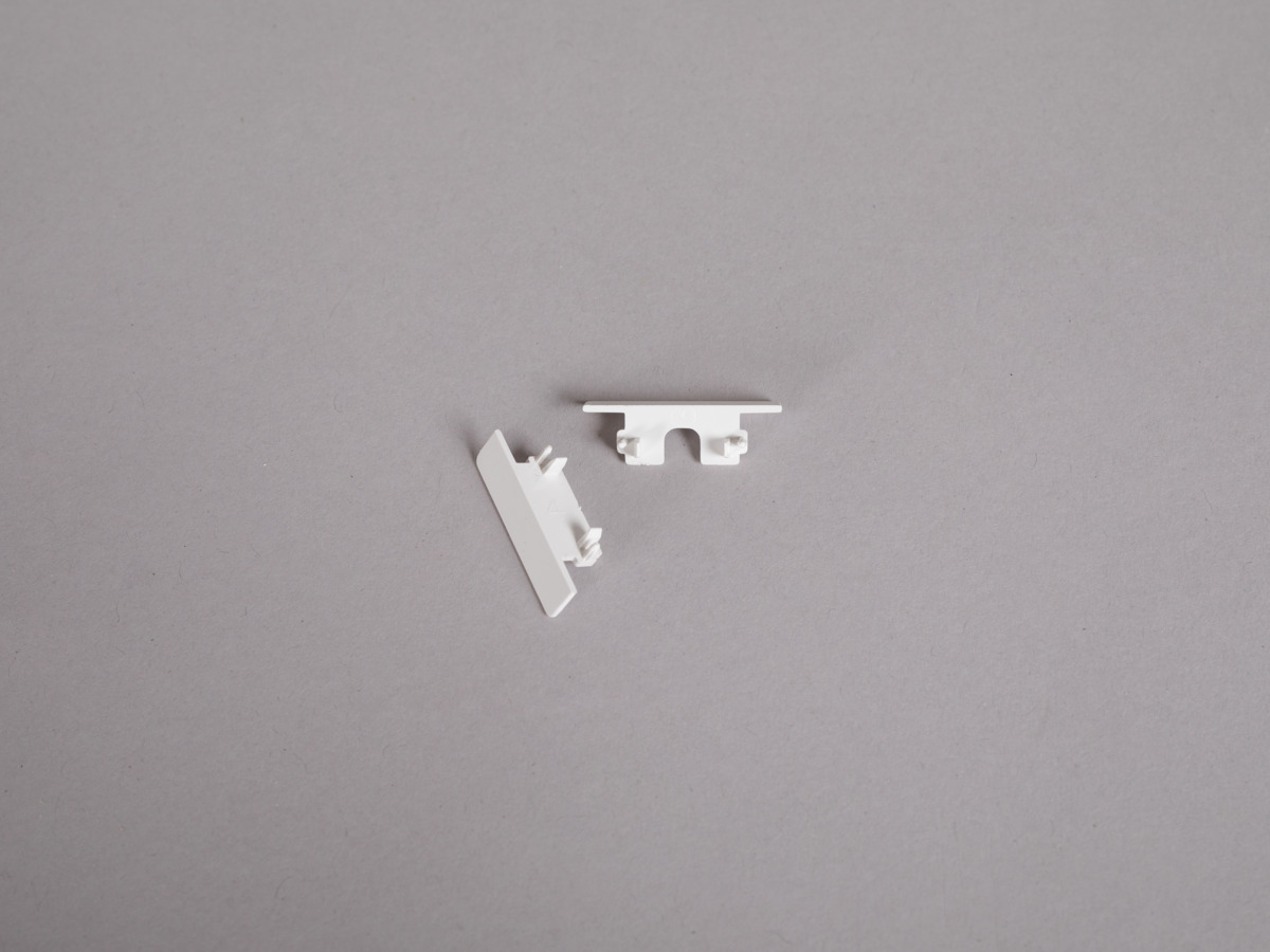 Plastic end caps with cable bushings for Profile Art Thin. 2 pcs. Available in white, black and aluminium colours. Fastened with press fit.