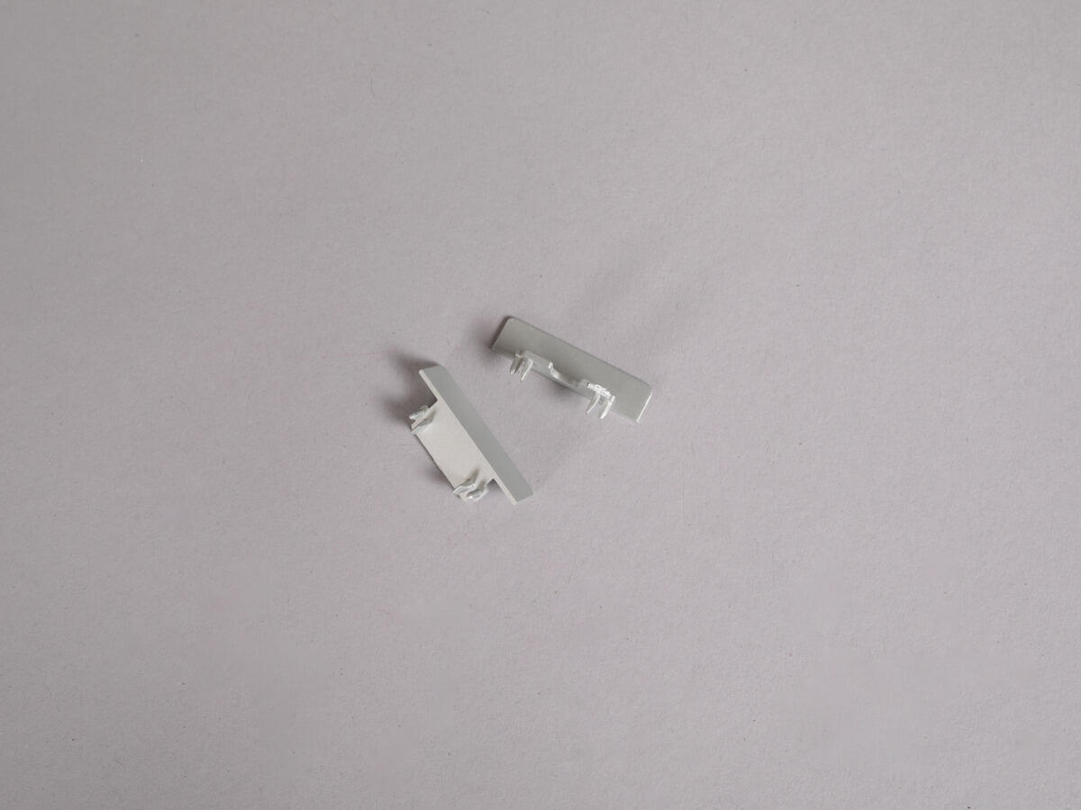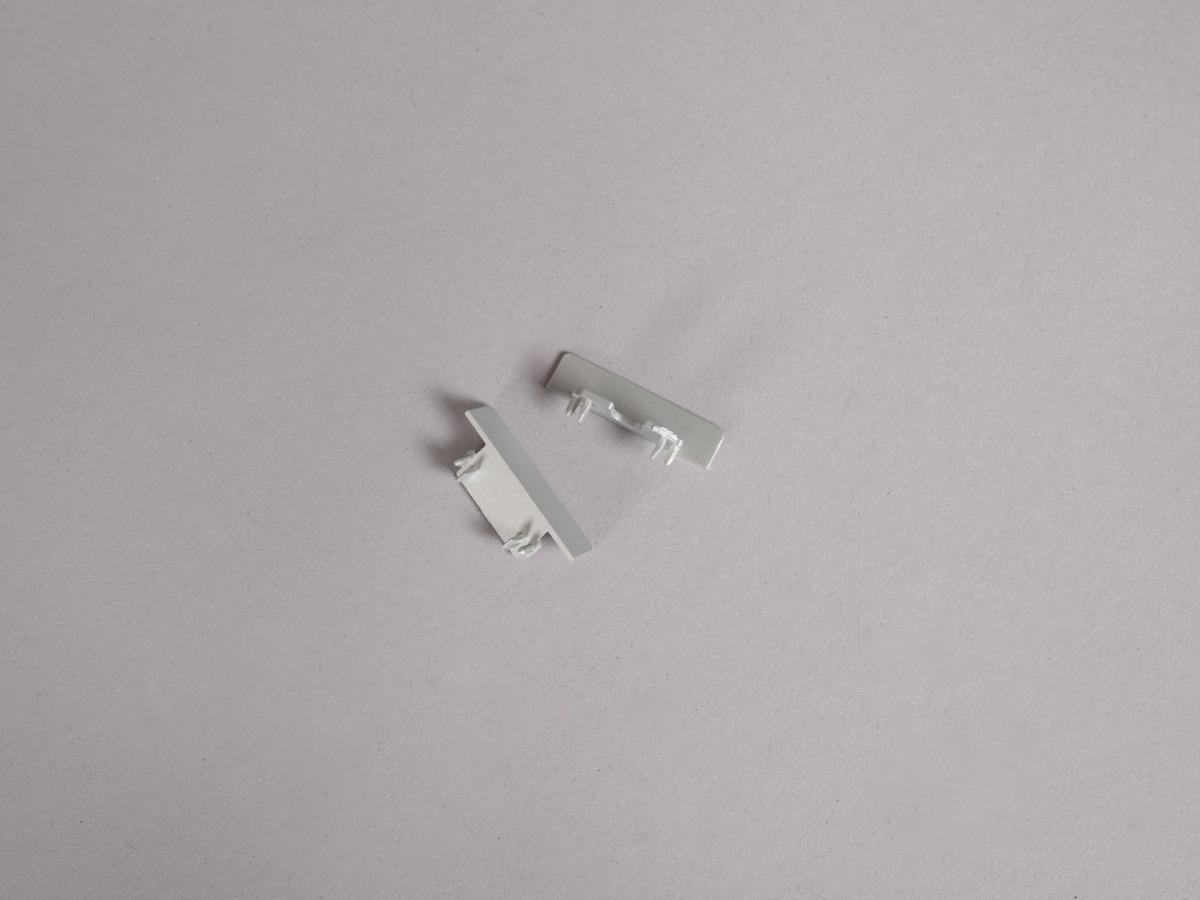 Plastic end caps with cable bushings for Profile Art Thin. 2 pcs. Available in white, black and aluminium colours. Fastened with press fit.