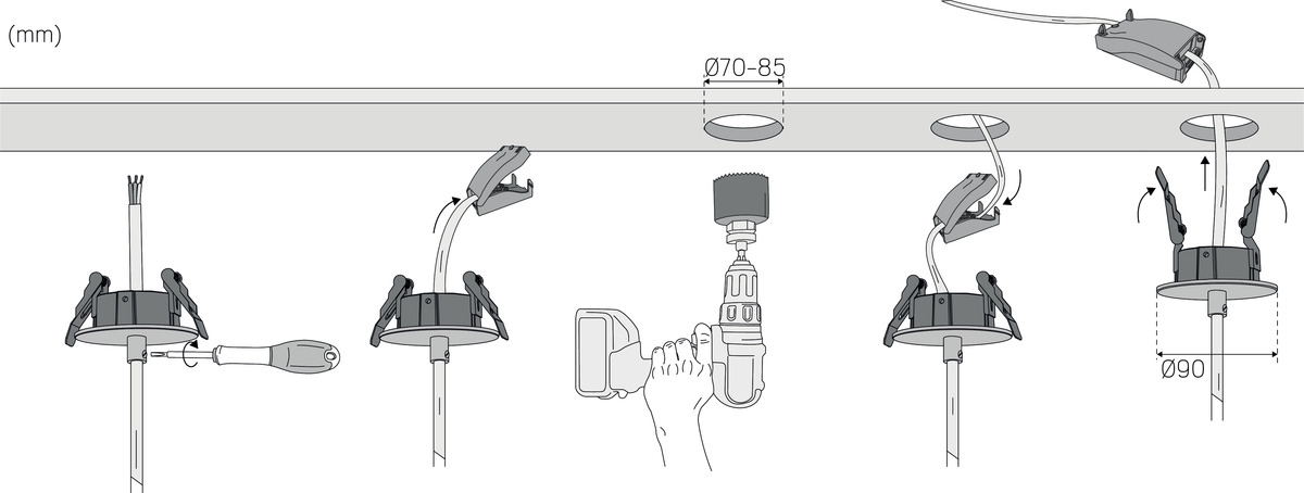 Accessories for hanging/mounting of pendant luminaire. Adapted for surface mounting directly into ceilings alternatively into or onto ceiling box. Also available in a version with springs for recessed installation in regular holes.