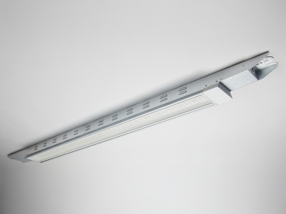 Indline Basic is a basic industrial luminaire – a cost-effective solution for replacing old T5 and T8 fluorescent tube installations. Available in two sizes, M and L, as well as the choice of On/Off or DALI. The well-thought-out design allows for replacement of both LEDs and drivers, which simplifies maintenance. On/Off can be adjusted to a lower lumen output and wattage via DIP-Switch Power. With a microprismatic louvre, it provides a good, even lumen output. The luminaire is supplied with opening end caps.