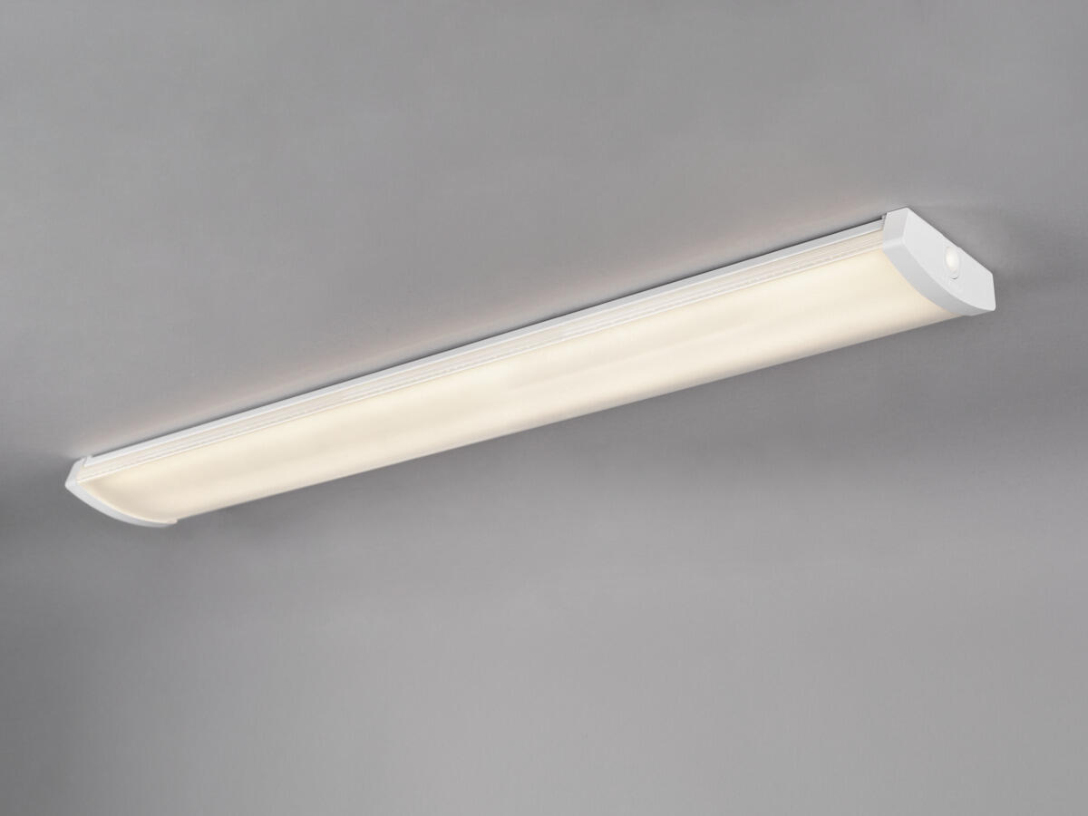 Industrial luminaire IP44 in basic model, replaces T5 and T8 luminaires with lower energy consumption and reduced maintenance. Luminaire of coated steel plate. Line prismatic diffuser in impact resistant PC with opal film and smart folding end caps. Push-in terminal, through wiring, one bushing in each end cap and two in the middle, one of which is centred, for concealed cable routing. Perfect when you are looking for a simple solution that does the job – basement storage, laundry rooms or simple industrial premises. Can be adjusted to lower light output and wattage via DIP-Switch Power.