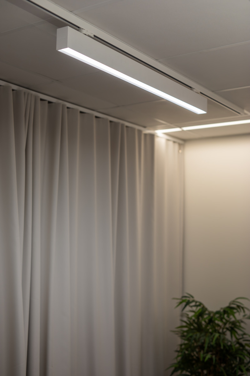 Luminaire for surface mounting in fixed ceiling or for recessed, without accessories, in ceiling with visible support profile. The LED light source is integrated with the anti-glare shield which is lowered and creates plenty of space for installation. Adapted for recessed installation without accessories in a ceiling with visible support profile. Provides a discrete and elegant impression in the ceiling. Meets screen and UGR requirements in standard conditions. Set the light level for different scenes via DALI/Push or control the lighting On/Off via an external switch.