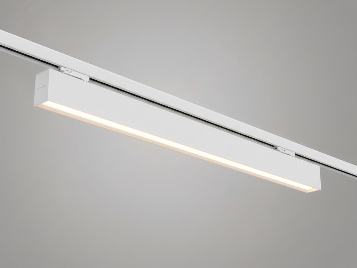 Discover Vision Track – where innovation meets installation. A tracklight that lets you choose your colour temperature from 2700K to 6500K, with or without RGB, and, with the aid of AI technology, can identify and intensify the surface colours of an illuminated object. Ideal for raising the colours of an object to a whole new level. Outstanding in dynamic environments such as car showrooms, museums, supermarkets and clothing stores – everywhere intensified colours make a difference. Maximise the colours of your subject with Vision Track Pro, which adjusts the settings automatically, or manually using our simple app for customised lighting. The luminaire has lens technology with a high luminous efficacy and is available in black or white. Vision Track can act as a secondary unit to Vision Track Pro. All models have Bluetooth Mesh for easy control of several luminaires. Low-build universal adapter for 3-phase track, supplied complete with integrated driver.