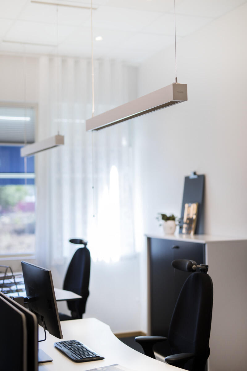 Luminaire for surface mounting in fixed ceiling or for recessed, without accessories, in ceiling with visible support profile. The LED light source is integrated with the anti-glare shield which is lowered and creates plenty of space for installation. Adapted for recessed installation without accessories in a ceiling with visible support profile. Provides a discrete and elegant impression in the ceiling. Meets screen and UGR requirements in standard conditions. Set the light level for different scenes via DALI/Push or control the lighting On/Off via an external switch.
