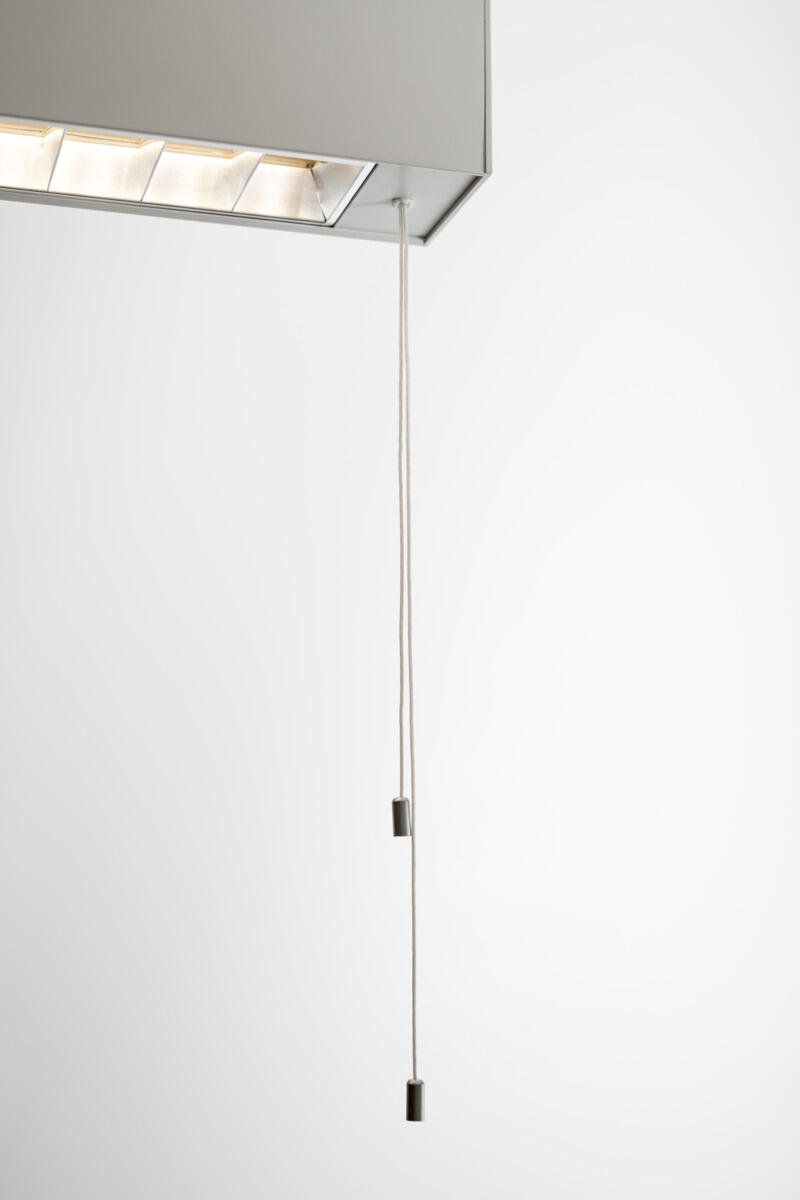 Pendant interior fixture for offices, classrooms, etc. White or black enamelled alu frame. Black or transparent cable on request. Double parabolic anti-glare shield creates a glare-free light distribution. Meets display screen and UGR requirements (UGR<19 office) under standard conditions. Light outlet 30/70 and 50/50. Controls for: On/Off, Pull dimmer, DALI/Push, PIR-sensor etc. Complete with installation accessories. Comes with a white earthed cord set and DALI with 5-pole cable and free ends.