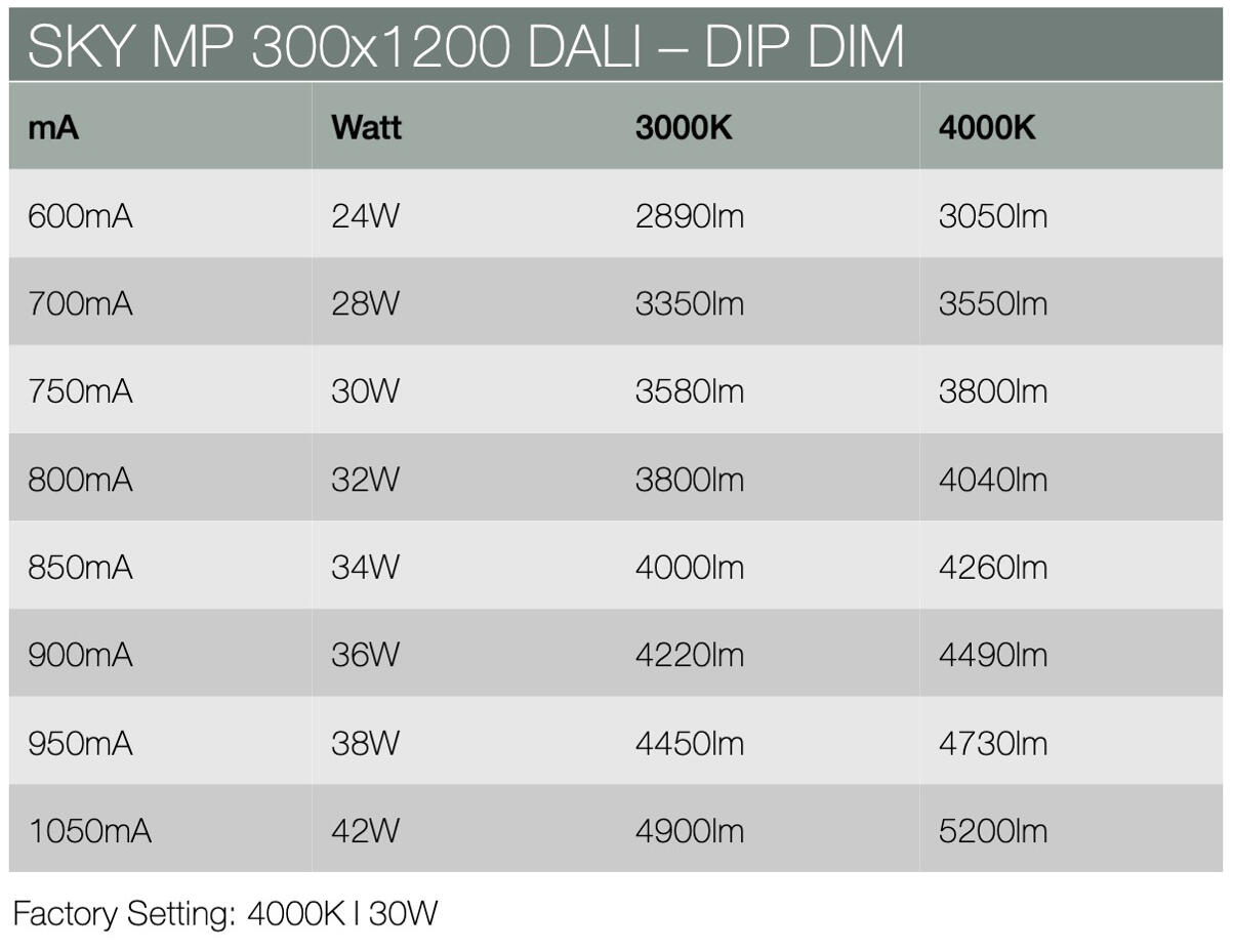 Sky MP 300x1200 DALI Linect 7392971150567 Sky MP 300x1200 DALI Linect 5200 DIP-Switch Power, Push 230V, DALI 2 90