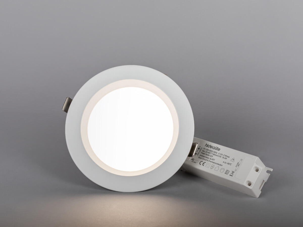 Low-build, energy-saving downlight for general lighting in large premises - perfect replacement for old compact fluorescent luminaires. Selectable colour temperature via DIP switch ColourTemp. Available in three sizes suitable for most cut out dimensions from 140mm to 218mm. Extremely efficient with broad beam angle together with opal diffuser, it creates an even general lighting in corridors, schools, canteens and waiting rooms, etc. Comes complete with phase dimmable driver and 2m cord set with earthed plug. Can be supplied with Q-Box Mini or Linect.
