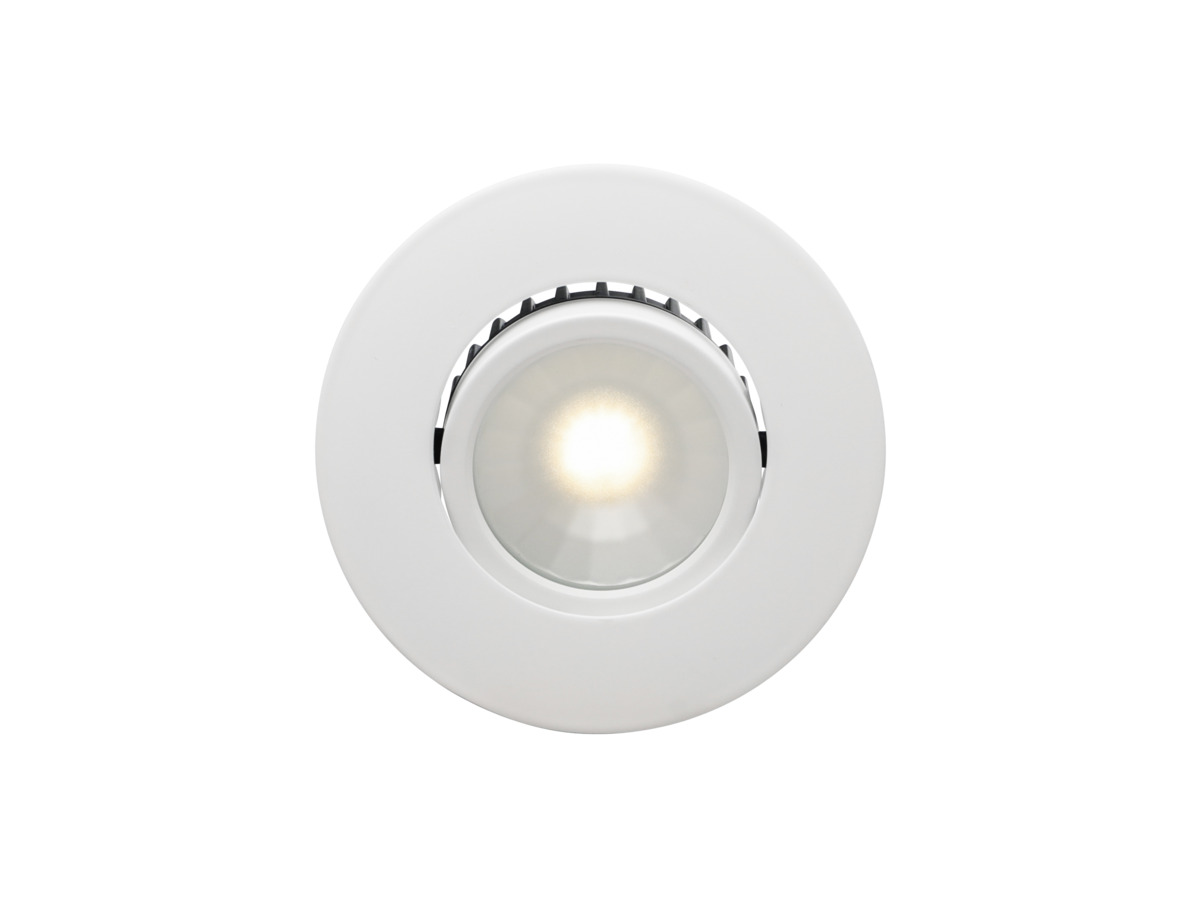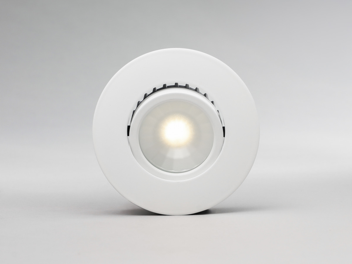 Low-build tiltable downlight, made for installation in 28mm secondary spaced boarding and approved for installation directly against insulation. Cut-out between 55-63mm – perfect replacement for old halogen fittings in renovation and maintenance work. Reflector technology, highly glare-free light distribution and extremely good colour rendering, Ra>95. IP44 rated for installation indoors or outdoors. Complete with phase dimmable driver, 3-pole push-in terminal for through wiring and screwless strain relief for cable or flex hose 230V. Dimmable with most common dimmers on the market.