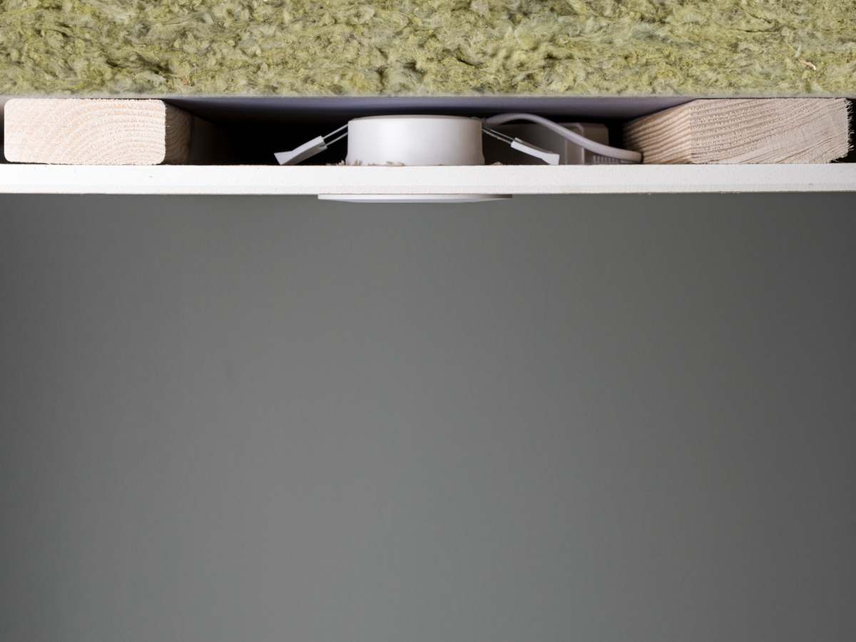 Cover intended for low-build downlights. Easy installation between secondary space boardin…