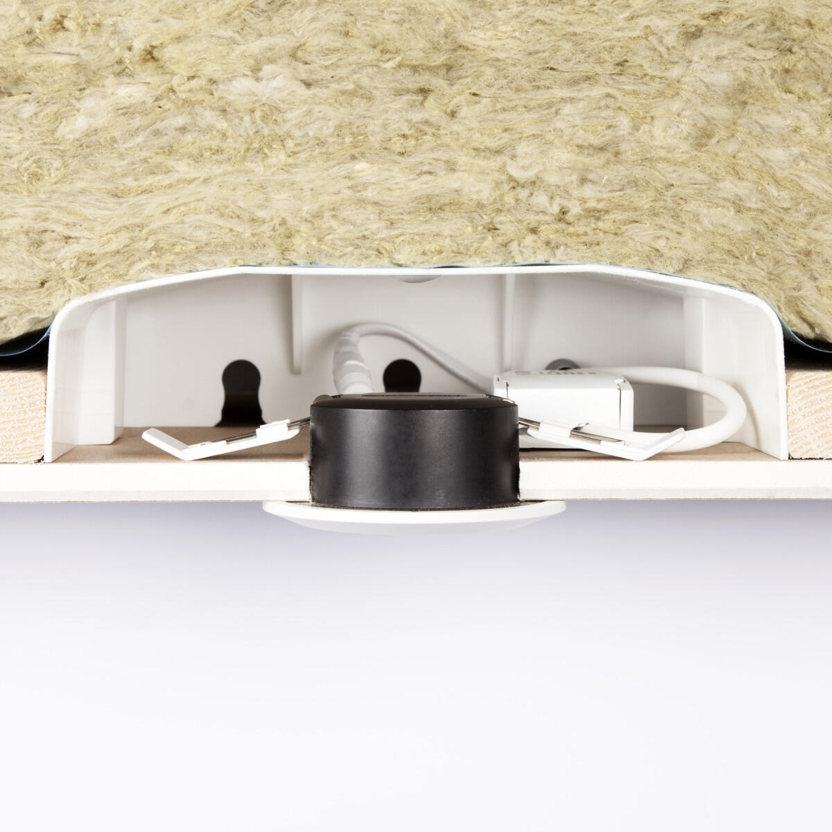 Downlight made for a sustainable future – easily dismantled via a module system to save time when recycling. Low-build and adapted for installation in 28mm secondary spaced boarding directly against insulation. Modern LED and reflector technology with good glare-free light distribution and high lumen output. Tiltable 30°, which also makes it the perfect choice for sloping ceilings. Very good colour rendering, Ra>95. Driver with cover that can be adapted for cable or flex hose 16mm. Comes with 3-pole push-in terminal for through wiring and strain relief. This luminaire is dimmable with the most commonly available dimmers on the market.
