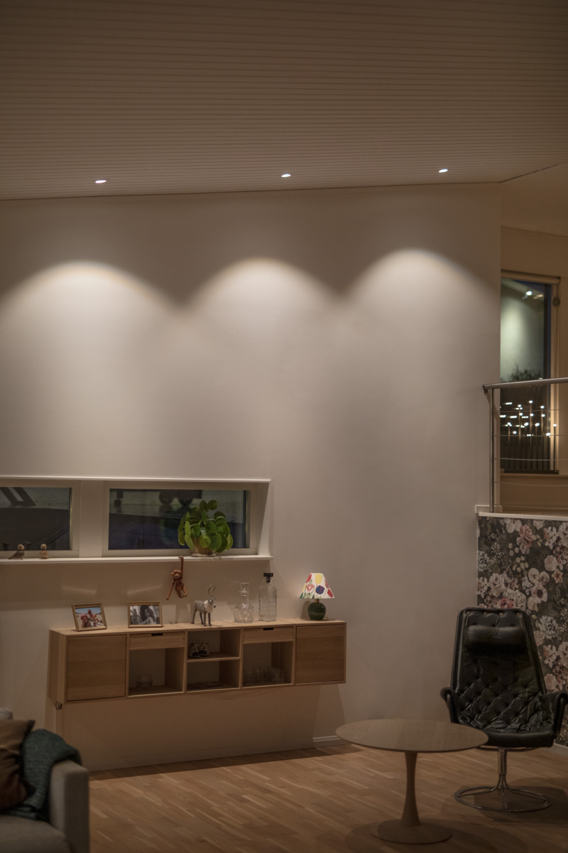 Low-build tiltable downlight, made for installation in 28mm secondary spaced boarding and approved for installation directly against insulation. Cut-out between 55-63mm – perfect replacement for old halogen fittings in renovation and maintenance work. Reflector technology, highly glare-free light distribution and extremely good colour rendering, Ra>95. IP44 rated for installation indoors or outdoors. Complete with phase dimmable driver, 3-pole push-in terminal for through wiring and screwless strain relief for cable or flex hose 230V. Dimmable with most common dimmers on the market.