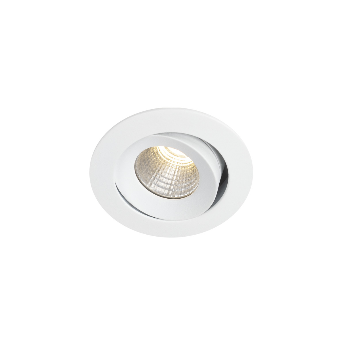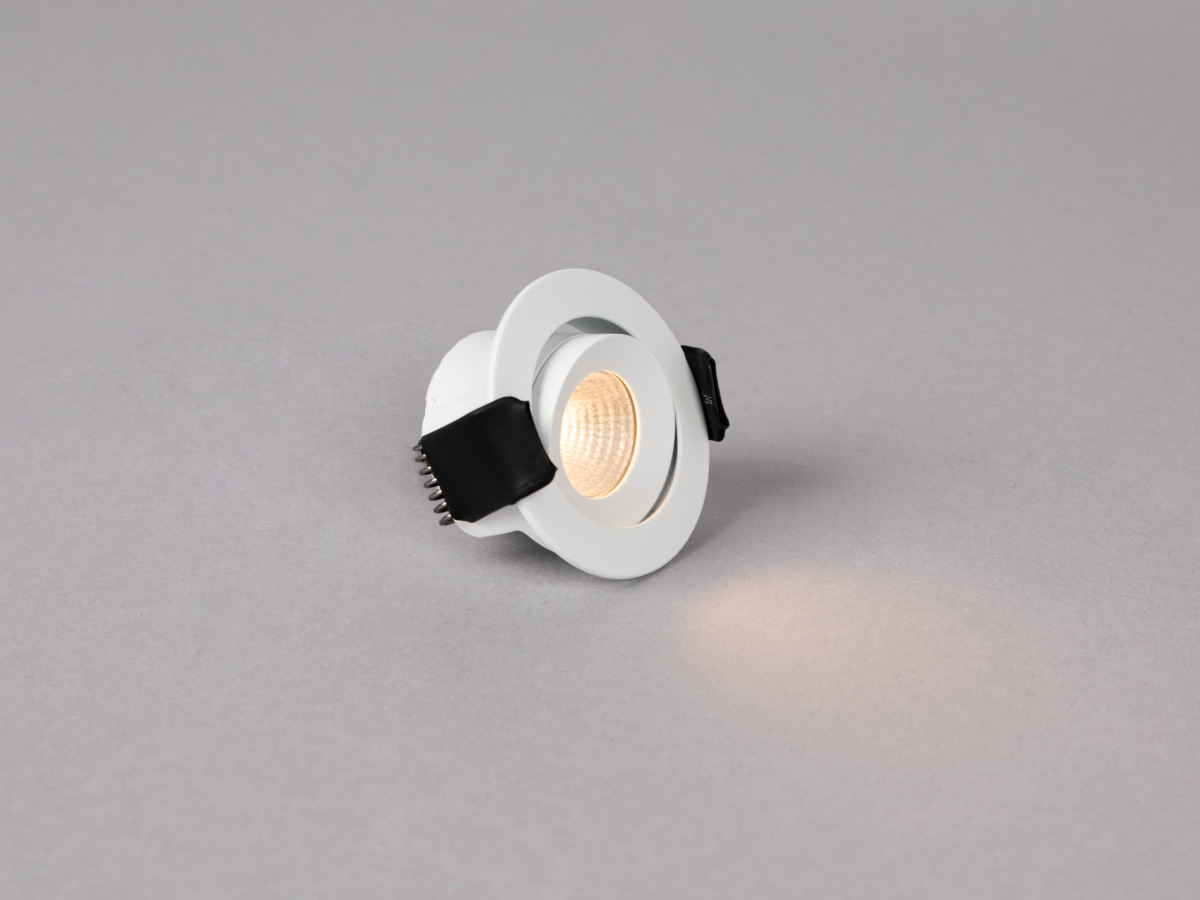 Low-build tiltable downlight, made for installation in 28mm secondary spaced boarding and approved for installation directly against insulation. Cut-out between 55-63mm – perfect replacement for old halogen fittings in renovation and maintenance work. Reflector technology, highly glare-free light distribution and extremely good colour rendering, Ra>95. IP44 rated for installation indoors or outdoors. Complete with phase dimmable driver, 3-pole push-in terminal for through wiring and screwless strain relief for cable or flex hose 230V. Dimmable with most common dimmers on the market.