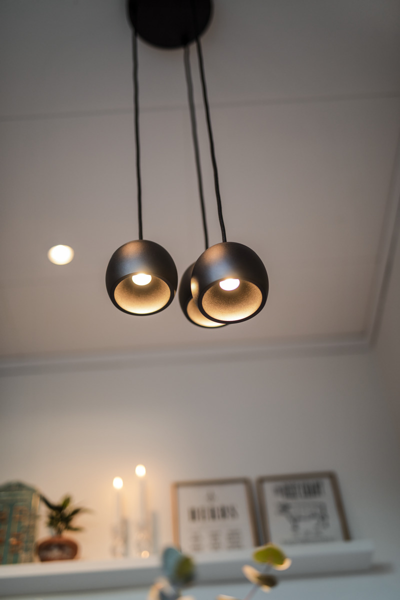 • Hang from ceiling socket, 230V rail or ceiling cups