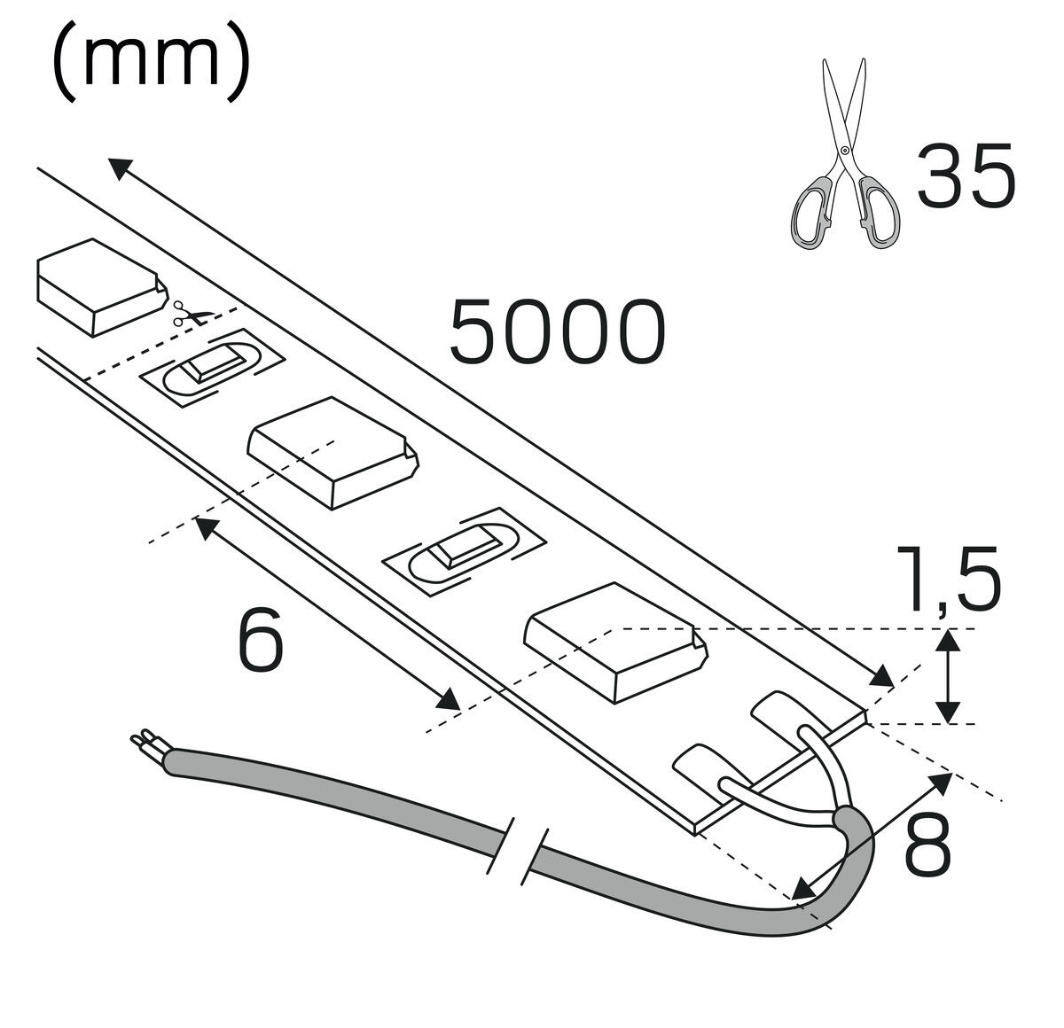 LEDstrip with technology that conceals the LED Chip and electronics under an homogenous phosphorous/silicone layer. Short spacing between the LEDs creates an even illuminated line without profile or cover. COB technology with high lumen output and very good efficiency. Cutting increments of 31,25 mm and seamless joints make it simple to adapt lengths. Comes as standard in rolls of five metres with 2 m connecting cable at each end, 1pc quick connection and self-adhesive tape for easy installation. Upon request, running meters with connection cables are delivered according to your specifications; running meters are delivered as standard without connection cables. Drivers are ordered separately according to required dimmer technology and placing. Maximum length 5m.