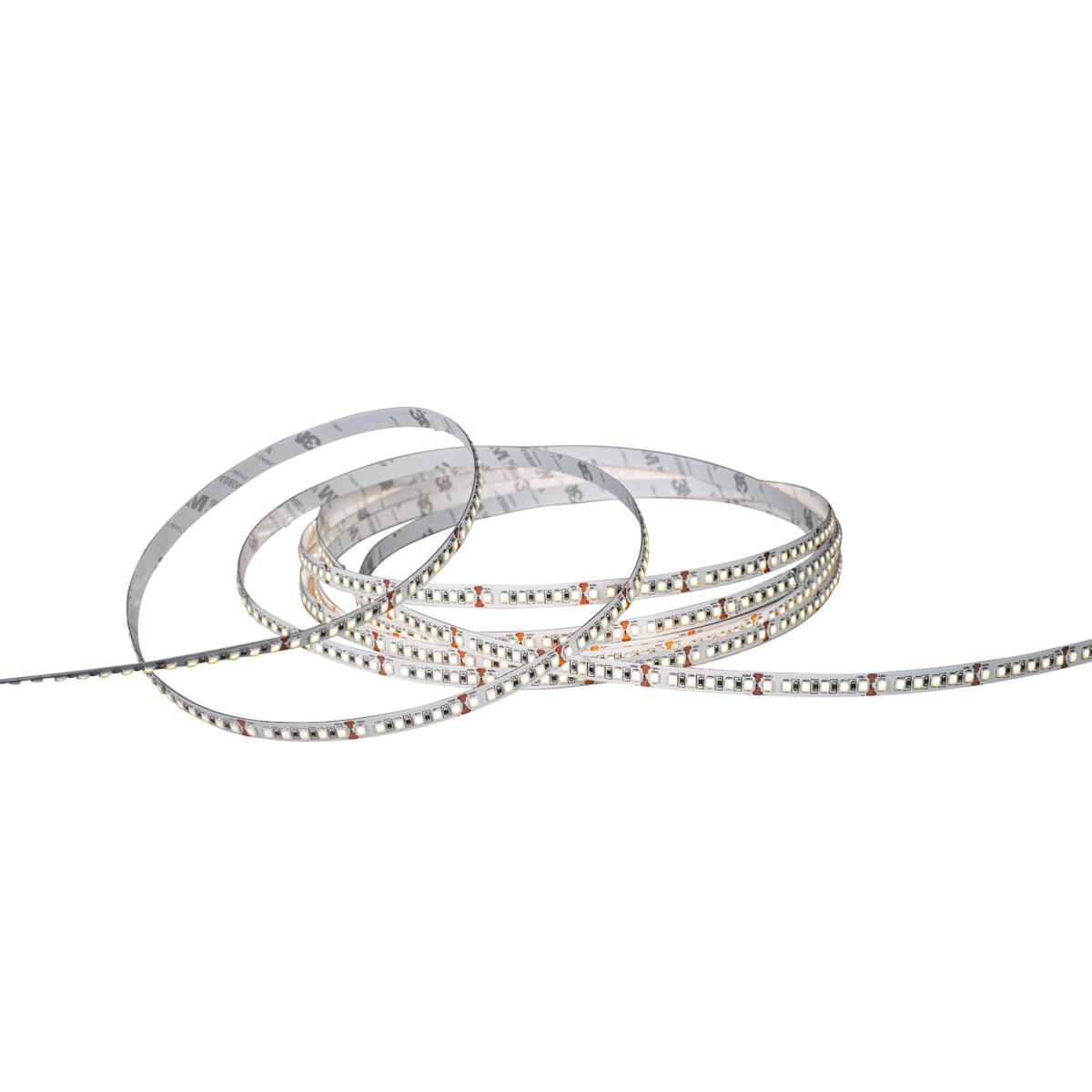 LEDstrip with short spacing between LEDs giving high lumen output with very good light quality and colour rendering, Ra>90. Perfect for a homogenous light with opal cover- also with lower profiles. Comes as standard in rolls of five metres with 2 m connecting cable at each end, 1pc quick connection and self-adhesive tape for easy installation. Also available made to measure in optional lengths with 5cm cut-off intervals. Upon request, running meters with connection cables are delivered according to your specifications; running meters are delivered as standard without connection cables. Drivers are ordered separately according to required dimmer technology and placing.