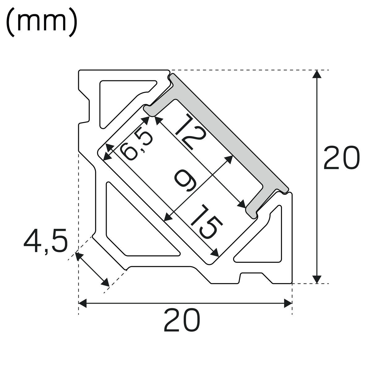 Angled profile for placement in 90° corners with concealed mounting that can be used with most of our LED strips. Can be supplemented with clear or opal cover for increased protection, new appearance and light spread. Available accessories include clips for mounting and end caps. Profile and accessories are adapted for installation in both indoor and outdoor environments.