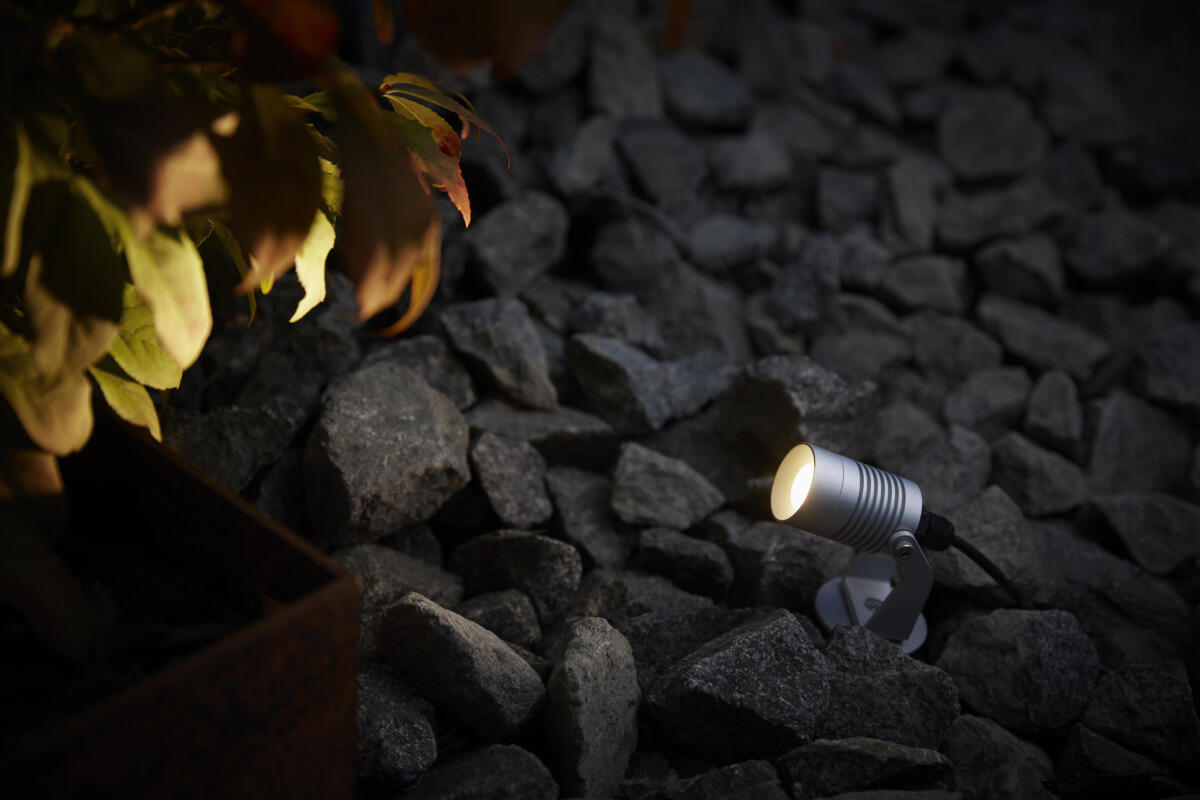 Accent luminaire in IP67 for e.g. wooden decks, stone walls and embedment. Use clips for optimal grip even in living materials, such as wood. Supplied with 2pcs 0.5m rubber cables with screw connections. Trafo Garden, embedment sleeve and extension cables are available as accessories. Can be combined with all luminaires in the Garden family thanks to the common connection system.