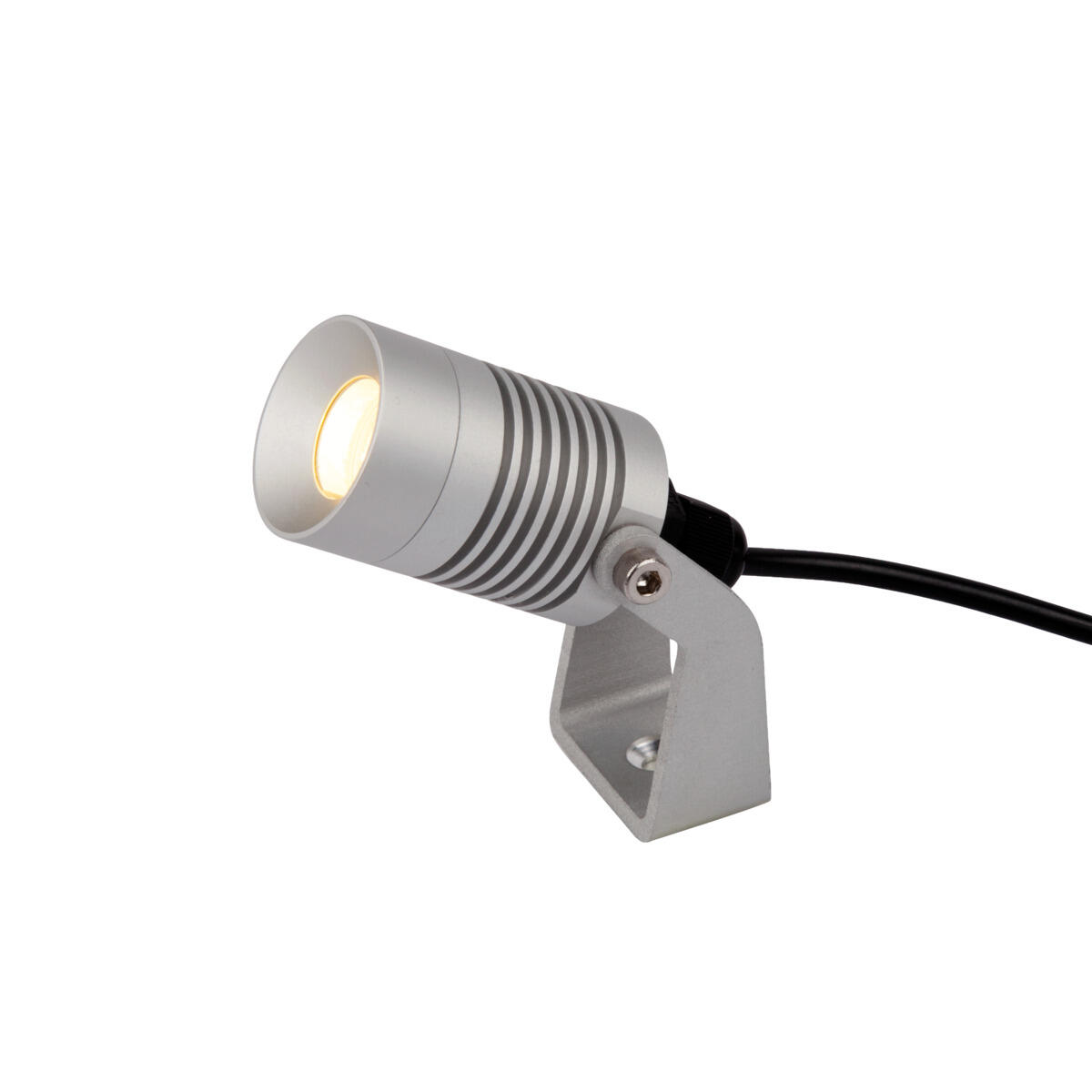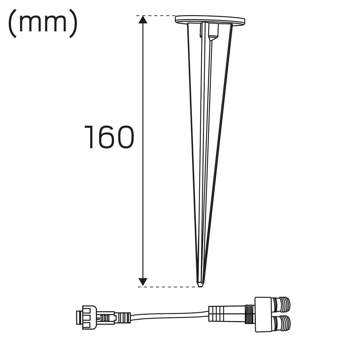 Kit with striking mini spots with low energy consumption. Small, adjustable and stylish luminaires for illuminating smaller objects in the garden, such as flower beds or small bushes and trees. Comes with 0.5 m rubber cable with screw connector and ground spike. The kit comprises 2x IP67 luminaires, 2x ground spikes, 2x T-connectors, 1x 1 m extension cable with quick connector and 1x plug-in transformer IP44 with 5 m cable. Can be combined with Decklight Garden thanks to the common coupling system.