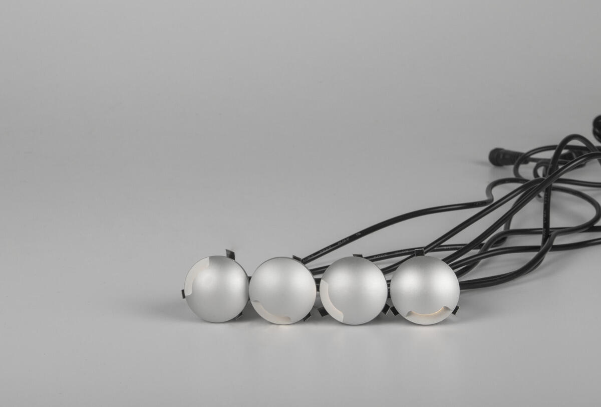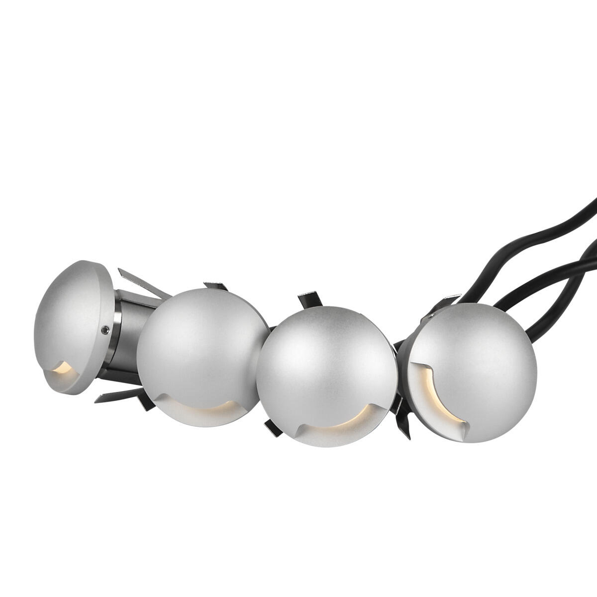 Kit for decorative step lighting with low energy consumption. Create striking staircase lighting, for example on patios and decks. The kit includes 4x IP67 luminaires, 3x 1m extension cables with quick connectors and 1x IP44 plug-in transformer with 5m cable. Can be combined with Spotlight Garden and Decklight Garden thanks to the common coupling system. Up to 12 luminaires can be connected to a single transformer.
