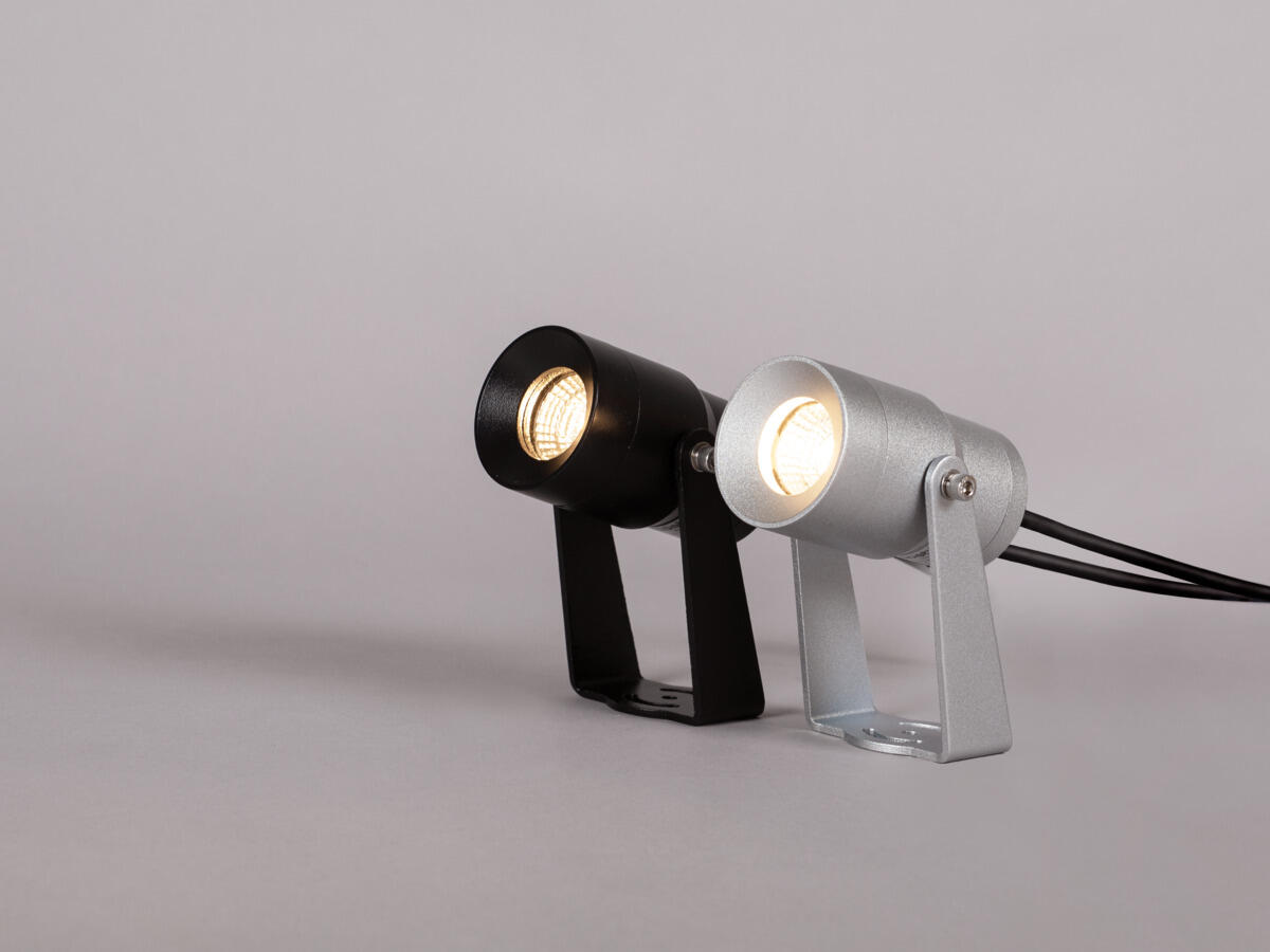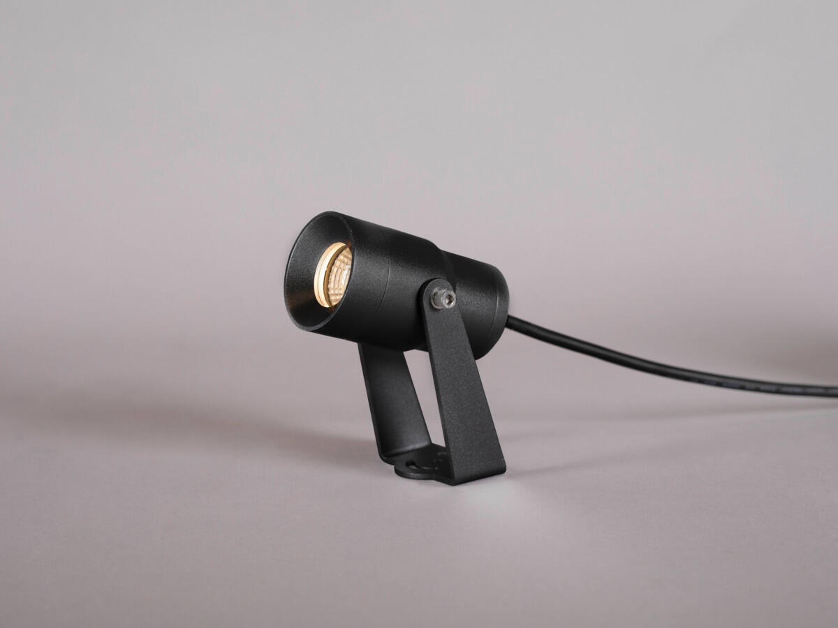 Compact phase dimmable floodlight with modern LED technology and a lean, stylish design. Adjust the amount of light as needed and easily let the amount of light grow in step with your garden. Illuminate trees, bushes, patios and facades, creating attractive effects. In black, which gives a modern impression. IP67 finish with luminaire housing in corrosion-treated cast aluminium with durable powder coating to cope with our Nordic climate. Selectable colour temperature via DIP-Switch ColourTemp Installed with bracket or accompanying ground spike. Comes complete with integrated dimmable driver and 2m rubber cable. Dimmable with most common dimmers on the market.