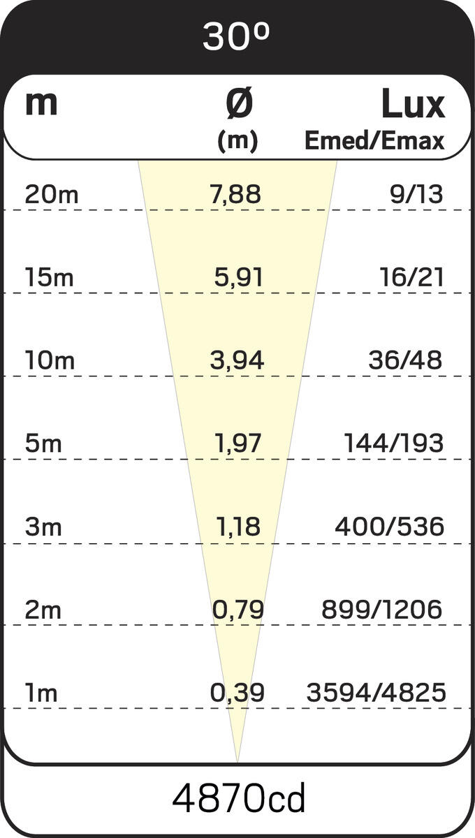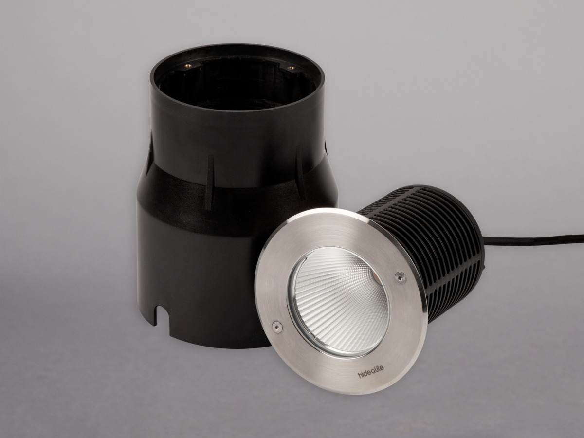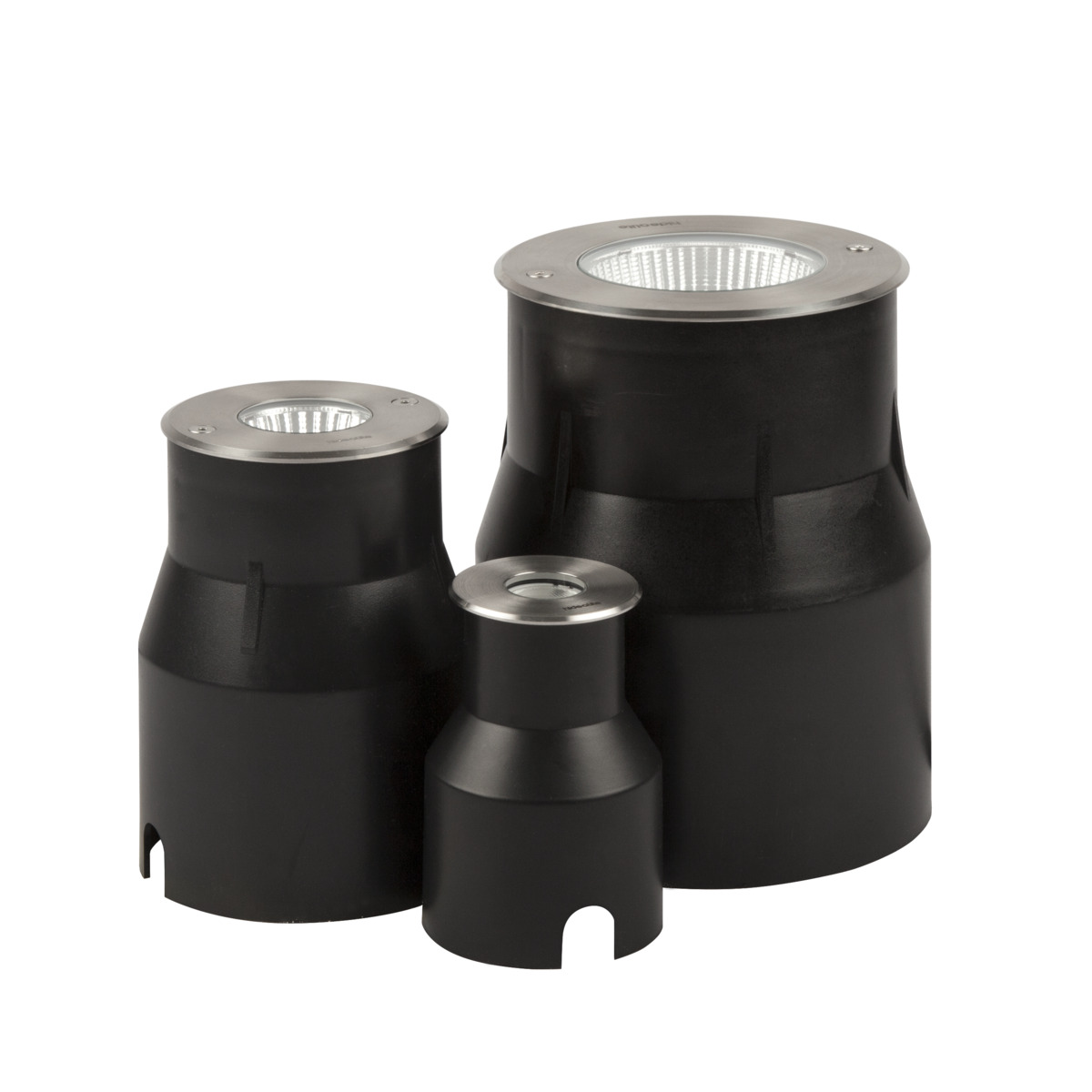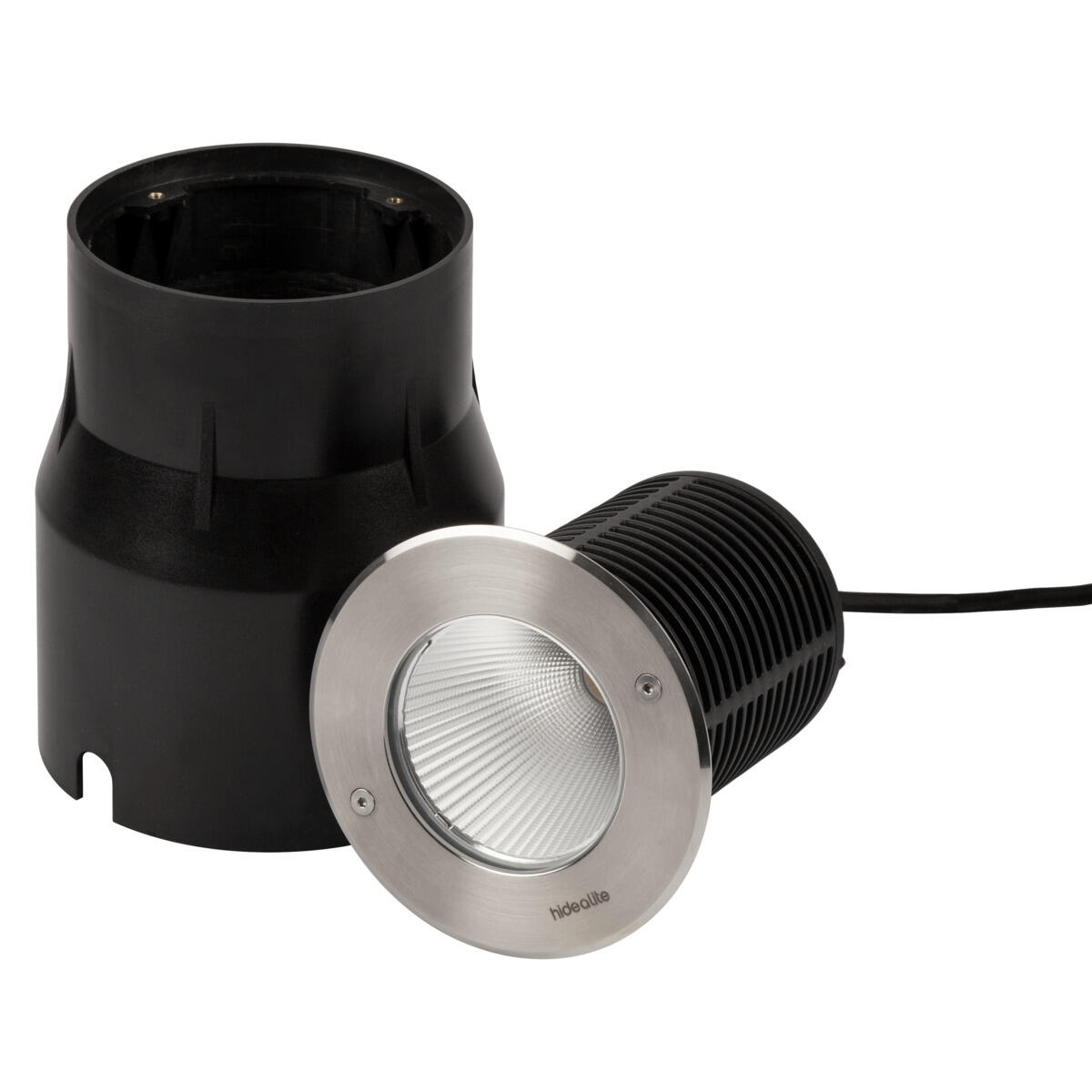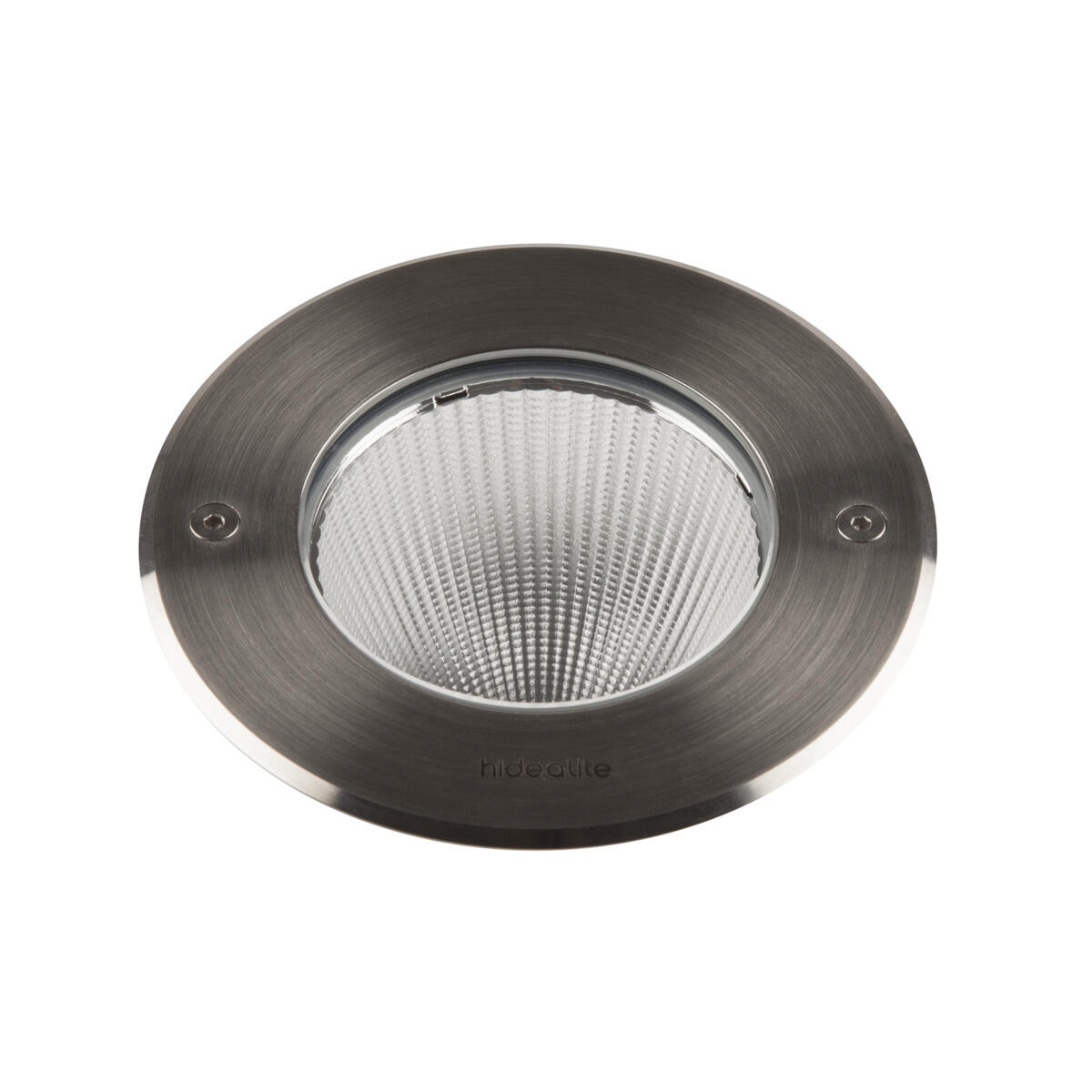 Energy-efficient ground light for public environments. Perfect for parks, arenas and industrial properties. Inset LED chip (COB) with modern reflector technology provides a bright and glare-free light. Housing of cast aluminium, outer ring of stainless steel (316) and hardened protective glass. Can be installed in the ground or embedded using the included mounting box. Comes complete with integrated driver, 2 m rubber cable and mounting box.