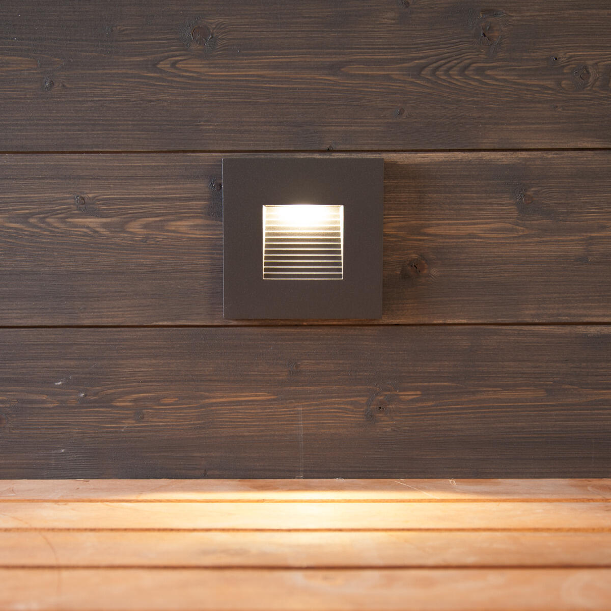 Decorative lighting with multichip technology for wall recesses with stylish design. Installed to highlight or illuminate alleys, walls or stairways. Integrated driver for direct 230V connection. Classified IP65, suitable both inside and out with 3000K for halogen character. Note! The build dimensions depend on method of installation. Please follow the user instructions. Comes with plastic mounting box.