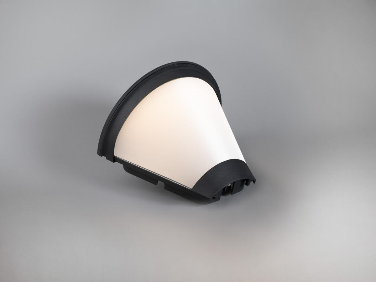 Impact resistant wall luminaire in cube-shaped timeless design for illumination of larger facades and entrances. Big brother in the Cube family. Easily installed and ready for direct connection to 230V. Simple installation thanks to separate rear element and push-in, loop-in, loop-out terminal block. Spacers for surface-mounted cable routing included. IP65 rating and durable powder coating for tough environments. Integrated driver with separate adjustable light level via DIP-Switch Power for up or downlight, 60% and 100%.
