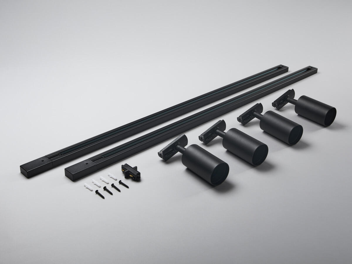 Stylish tracklight supplied as a versatile kit. Fits perfectly in both home and public environments, for example small premises, hotel rooms and shops; you can choose and replace light sources yourself. The kit has 4 luminaires, together with 2 x 1m 1-phase tracks and accessories to create one or two units. Honeycomb baffle are available as accessories to change the appearance and decrease glare. Compatible with our LiteTrac system; can be extended or changed as needed.