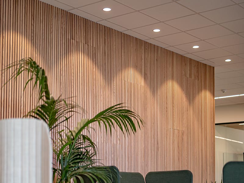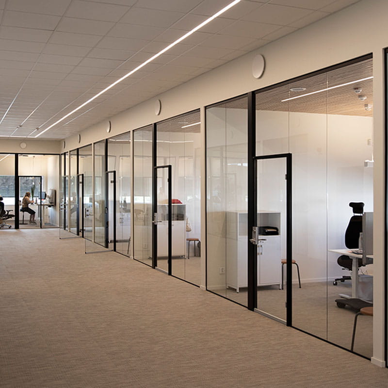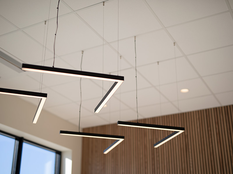 Suurikokoinen suorakulmainen musta uudisrakennus suorine linjoineen luo vaikutelman huippumodernista ilmeestä.Tällainen on näky, johon törmäämme hieman keskustan ulkopuolella Ruotsin Smoolannin Tranåsissa. Logo toistuu rakennuksen julkisivussa ja on myös ensimmäinen asia, jonka näemme astuessamme sisään rakennukseen. Tässä tilassa sisäänkäynnin yläpuolella, katosta riippuvat asiakaskohtaiset räätälöidyt mustat V-muotoiset profiilit, joihin on asennettu tehokkaat LED-nauhat. Valaistus toimii samalla opasteena vierailijoille ja on suunnittelu valaisemaan rakennuksen pääsisäänkäyntiä.