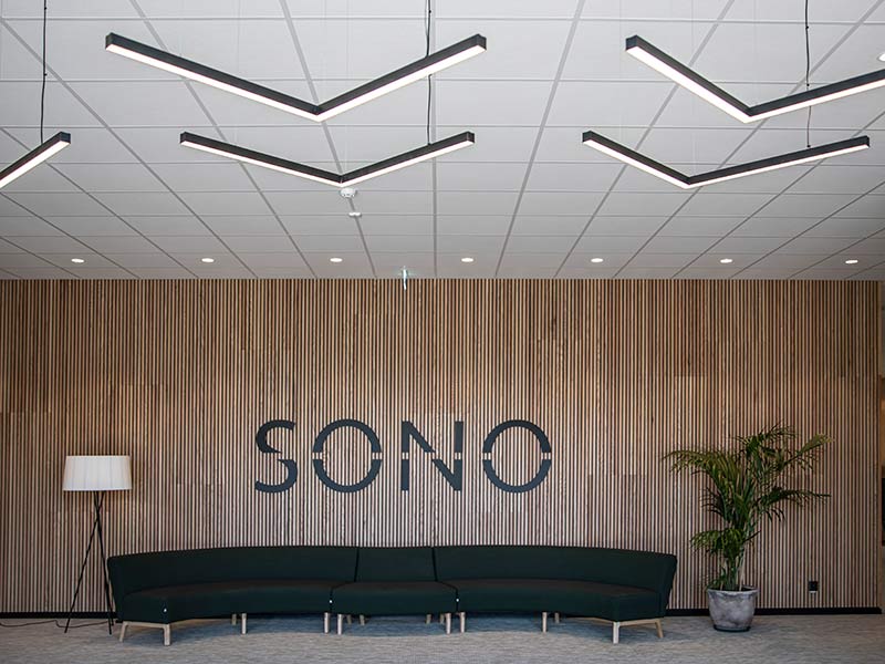 Hide-a-lite oli nopeasti selvä valinta valaistuskonseptin kehittämiseen SONO brandsin uusiin tiloihin. Samanlaisia moodboardeja lähetettiin takaisin valaisinvalinnoilla ja ideoilla täydennettynä vastaamaan SONO brandsin ajatuksia ja visioita. Valaistus johti konseptuaaliseen ajatteluun, jossa oli suhteellisen vähän erilaisia tuotteita eri alueille; sisäänkäynti, toimistot, ruokailuhuone, kokoustilat, wc ja varastotila.