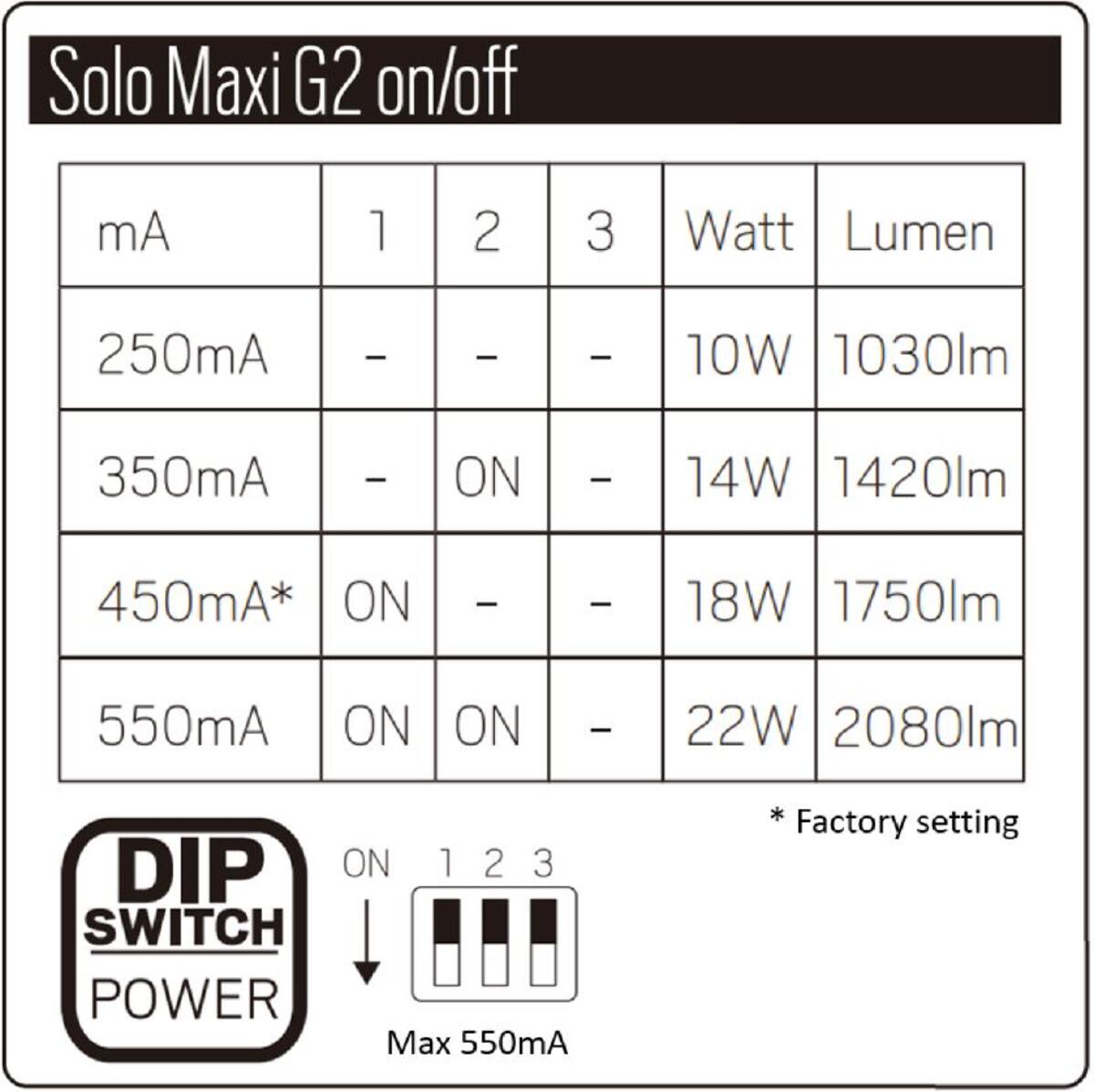 Solo Maxi G2 Musta 3000K 4222429 Solo Maxi G2 Musta 3000K Musta OnOff, DIP-Switch Power