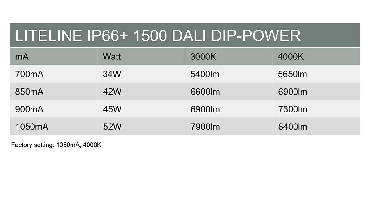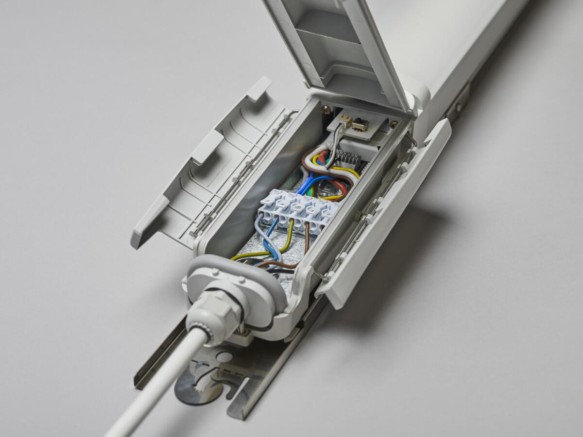 Erittäin tehokas loisteputkien tilalla. Liukuvat yleiskiinnikkeet ja erillinen kytkentätila päädyissä. Pikaliittimet 5x2,5mm2 läpijohdotusta varten vakiona, holkkitiivisteet M20 ja läpiviennit jokaisessa päädyssä asennuksen helpottamiseksi. Mukautettu asennettavaksi valaisinkiskoon, avaimenreikä kattoasennusta varten ja integroitu vaijeriripustus koukulla ja koukkulukolla. D-merkitty, IP65- ja IK09-luokiteltu asennettaviksi vaativiin ympäristöihin ja tiloihin, joissa on suurentunut palovaara (On/Off ja S). Säädettävä valomäärä Power-DIP-kytkimillä. Sopii esimerkiksi pysäköintitaloihin sekä pölyiseen ja likaiseen teollisuuteen.