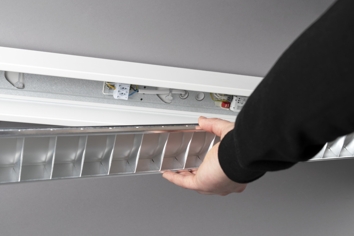 Himmennettävä perusvalaisin valonjakaumalla 50/50, sopii erinomaisesti toimistoihin ja pieniin tiloihin. Runko ja päädyt valkoiseksi lakattua alumiinia. Mikroprismahäikäisysuoja luo häikäisemättömän valokuvion alaspäin, ja ylös suunnattu valo luo epäsuoran ja varjottoman valon. Vetokatkaisin ylös- ja alasvalon yhteiseen himmennykseen. Muistitoiminto viimeksi asetettua arvoa varten sähkökatkon yhteydessä. Mukana toimitetaan asennustarvikkeet useita kattotyyppejä varten ja 2,5 metrin johto, jossa on maadoitettu pistoke.