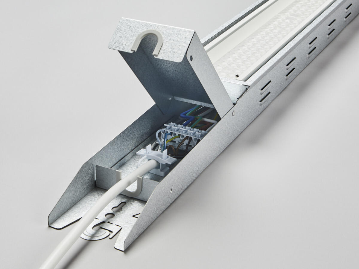 Erittäin tehokas loisteputkien tilalla. Liukuvat yleiskiinnikkeet ja erillinen kytkentätila päädyissä. Pikaliittimet 5x2,5mm2 läpijohdotusta varten vakiona, holkkitiivisteet M20 ja läpiviennit jokaisessa päädyssä asennuksen helpottamiseksi. Mukautettu asennettavaksi valaisinkiskoon, avaimenreikä kattoasennusta varten ja integroitu vaijeriripustus koukulla ja koukkulukolla. D-merkitty, IP65- ja IK09-luokiteltu asennettaviksi vaativiin ympäristöihin ja tiloihin, joissa on suurentunut palovaara (On/Off ja S). Säädettävä valomäärä Power-DIP-kytkimillä. Sopii esimerkiksi pysäköintitaloihin sekä pölyiseen ja likaiseen teollisuuteen.
