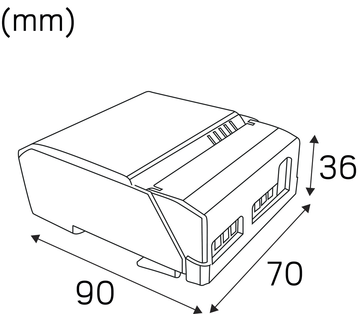 3-lähdön kytkentärasia 350 mA ja 700 mA sarjaankytkentää varten, helppo ja nopea asennus.
